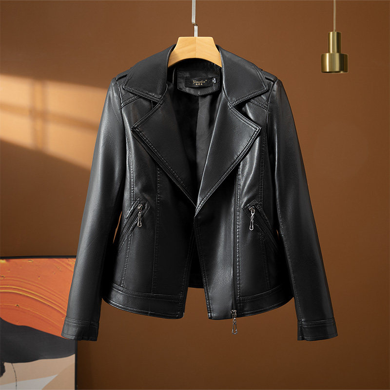 淘爱情魔鬼鱼 黑色翻领皮衣夹克女2026春季新款时尚宽松机车服外套