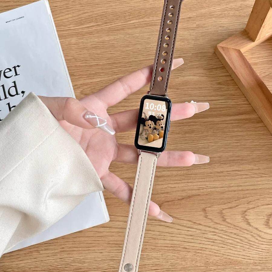 天猫适用华为手环10/9/8nfc表带新款皮质华为手环表band7/6pro腕带荣耀运动智能电子手表手腕带六七八代手表带女