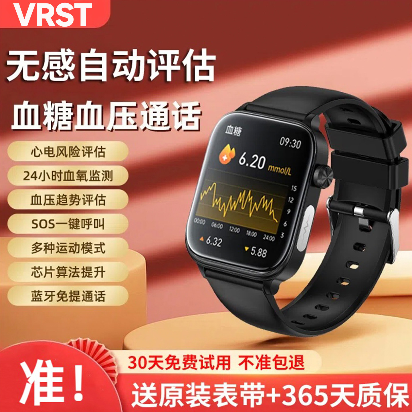 天猫VRST高精度血糖测血压风险评估无创智能手表全天动态心率血氧心电健康睡眠监测量仪尿酸运动蓝牙通话手环老人