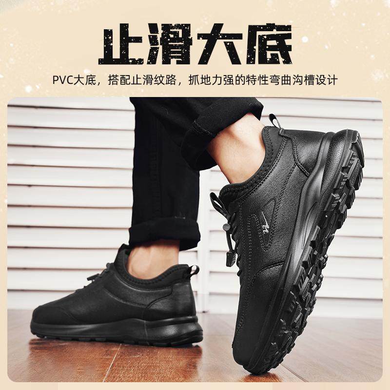 淘回力运动鞋男鞋新款春季防水泼黑色鞋子男休闲软底减震皮面跑步鞋