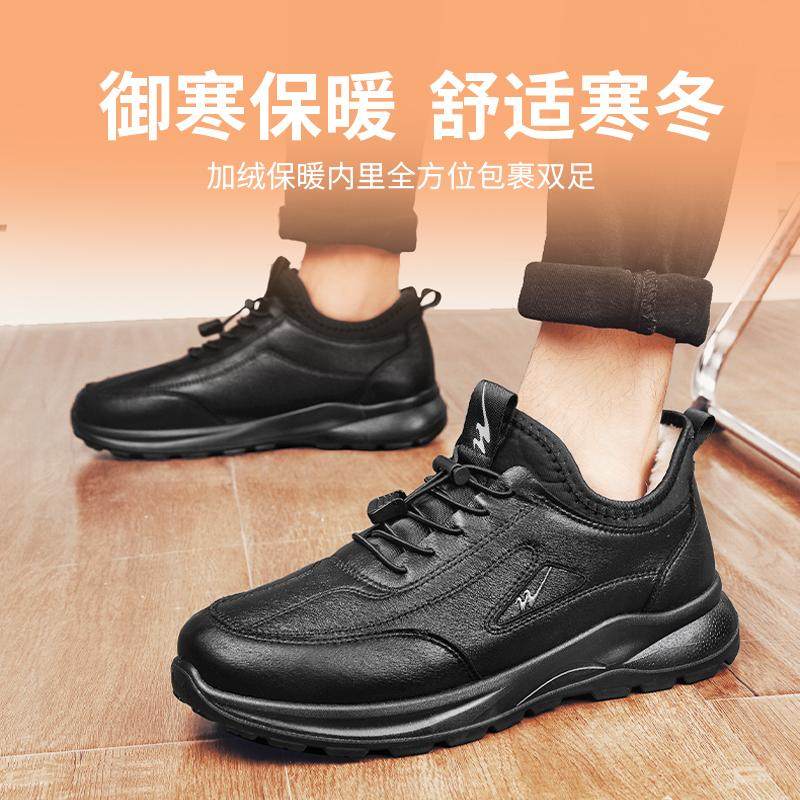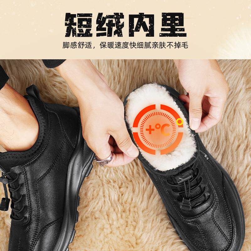 天骆驼男鞋冬季真皮软底一脚蹬休闲皮鞋商务加绒保暖棉鞋中年爸爸鞋