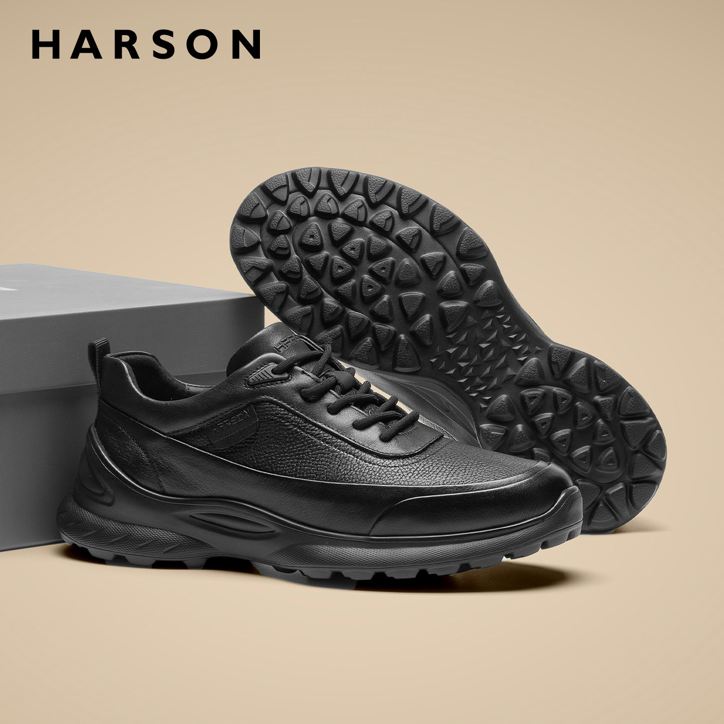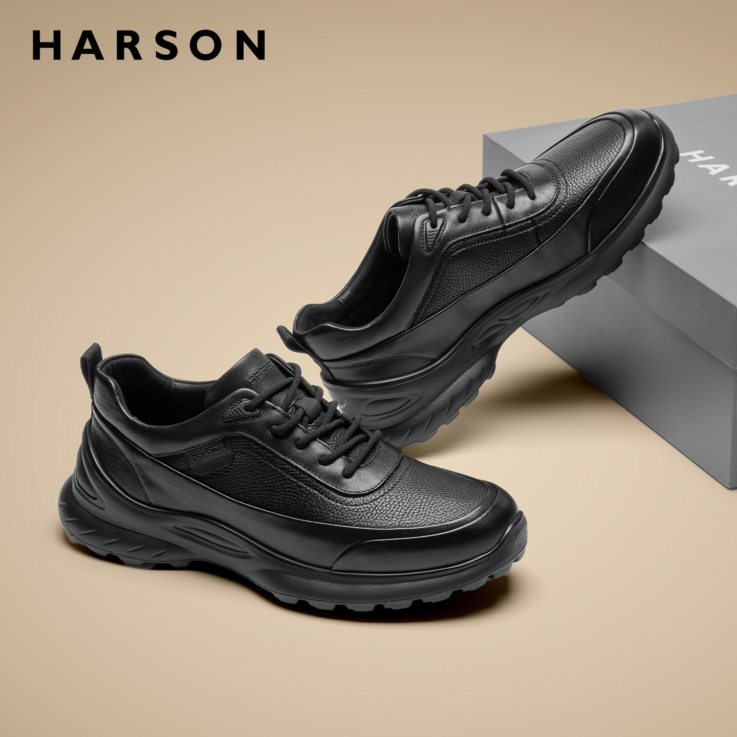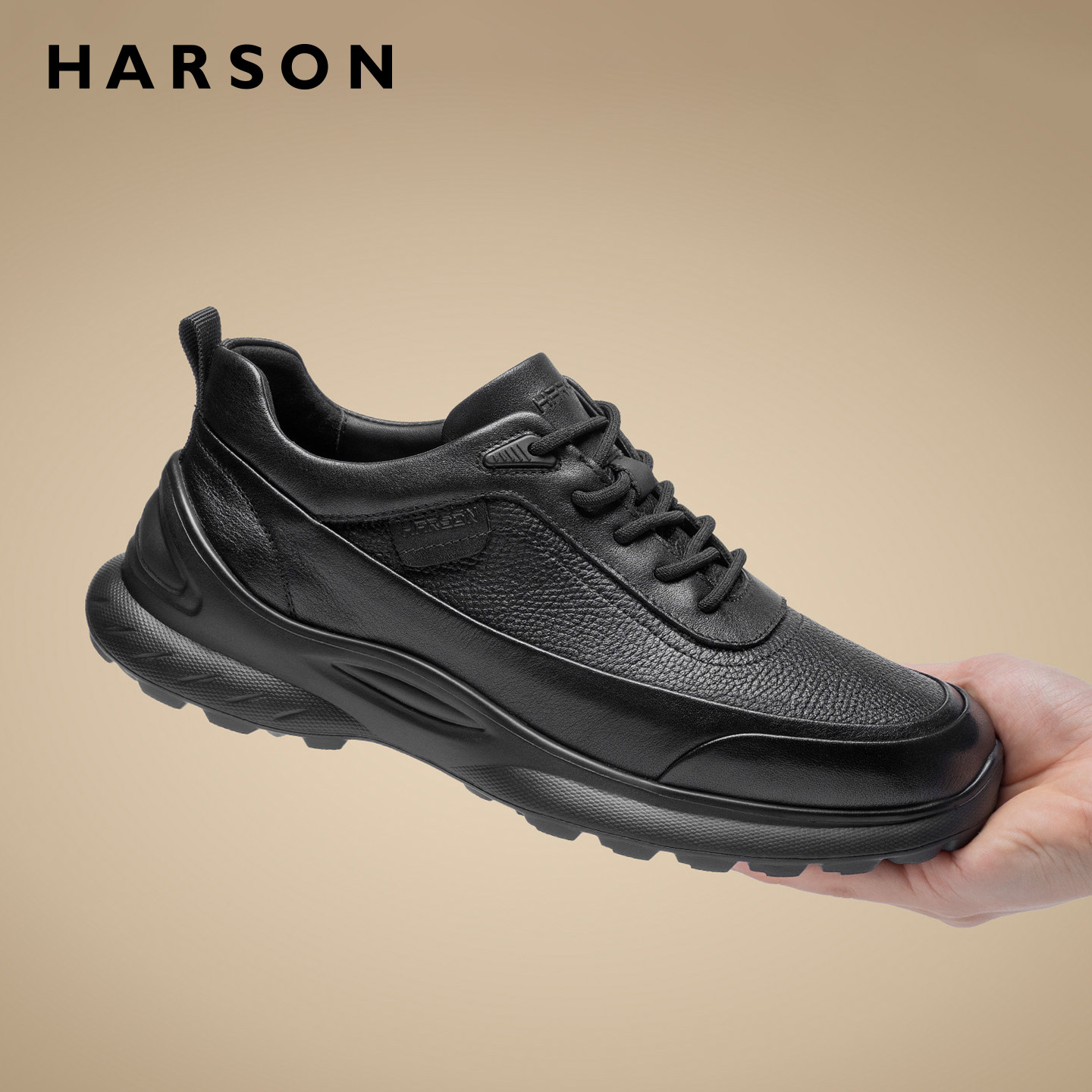 天猫哈森软底男鞋高级感男士商务休闲鞋黑色软底公务鞋真皮运动皮鞋男