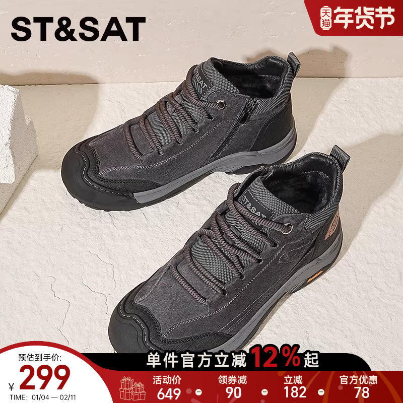 天猫星期六男鞋2025秋冬新款高帮鞋防滑加绒休闲鞋运动户外徒步登山鞋