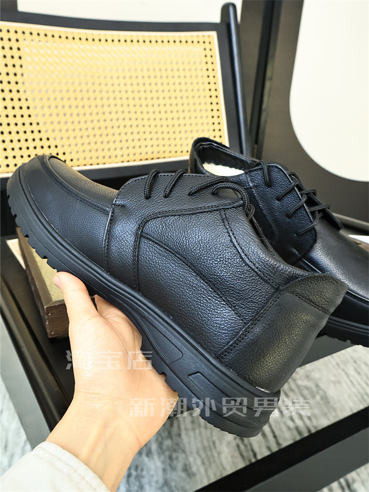 淘宝满满的绒+小牛皮料!秋冬男士纯色加绒保暖时尚商务休闲真皮皮鞋