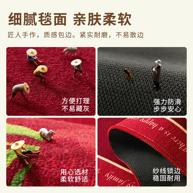 天猫结婚地毯卧室床边毯婚礼红色喜庆椭圆形防滑垫婚房装饰加厚脚垫子