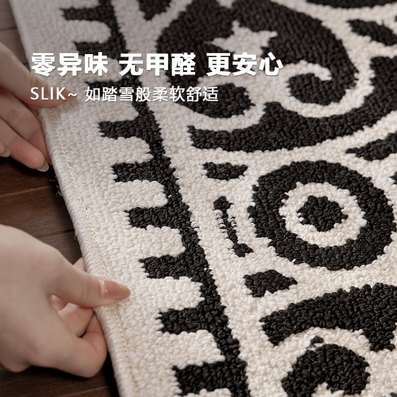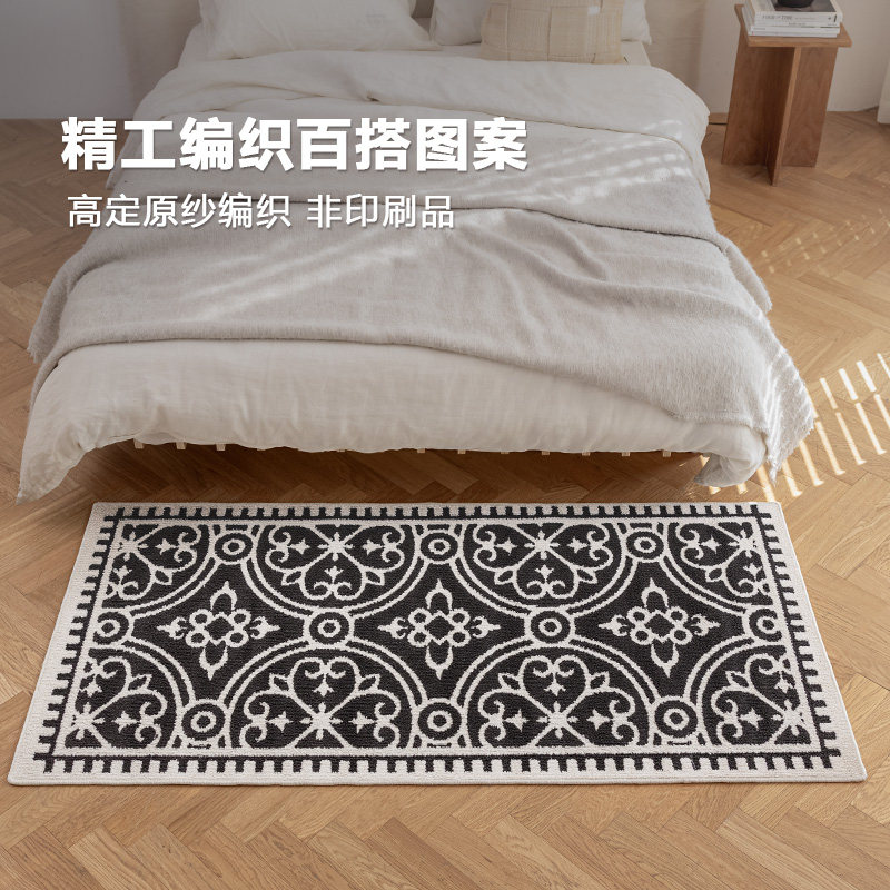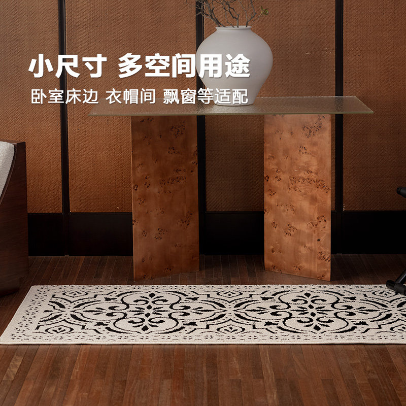 天猫法式中古风卧室床边毯 古臻客厅地毯长条免洗可擦高级感轻奢美式