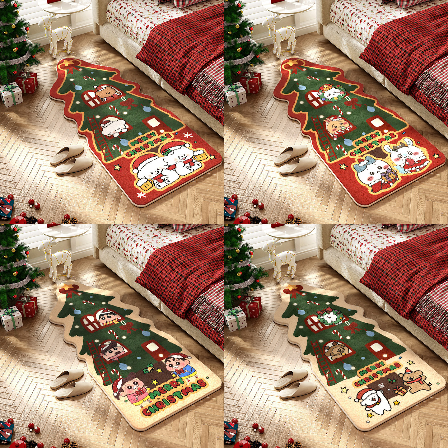 天猫线条小狗毛绒可爱圣诞氛围感卧室床边地毯卡通卧室飘窗柔软防滑垫