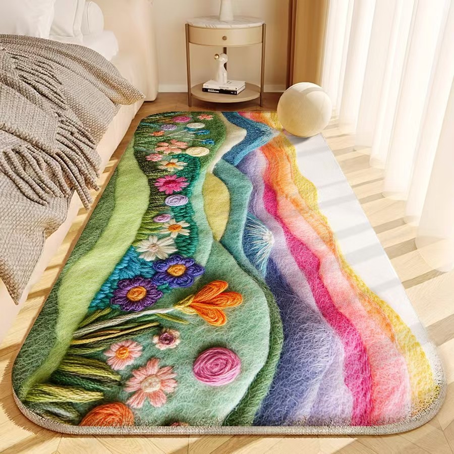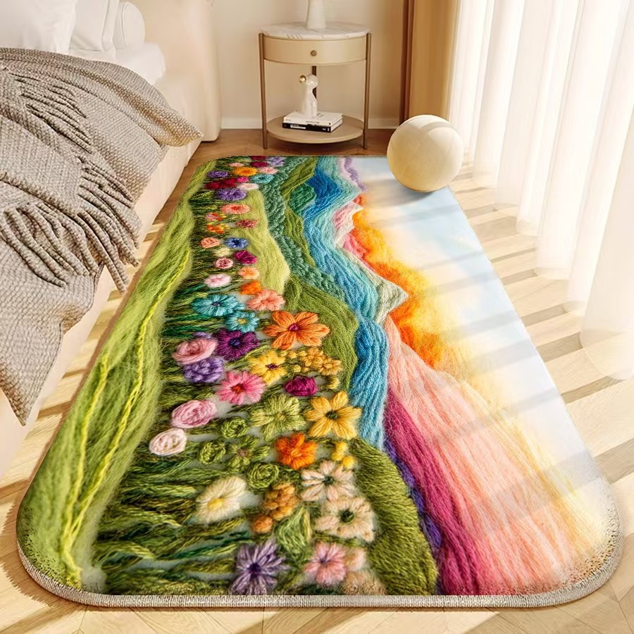 淘宝田园简约卧室床边毯多彩花朵房间客厅加厚隔音床边垫床尾地毯防滑