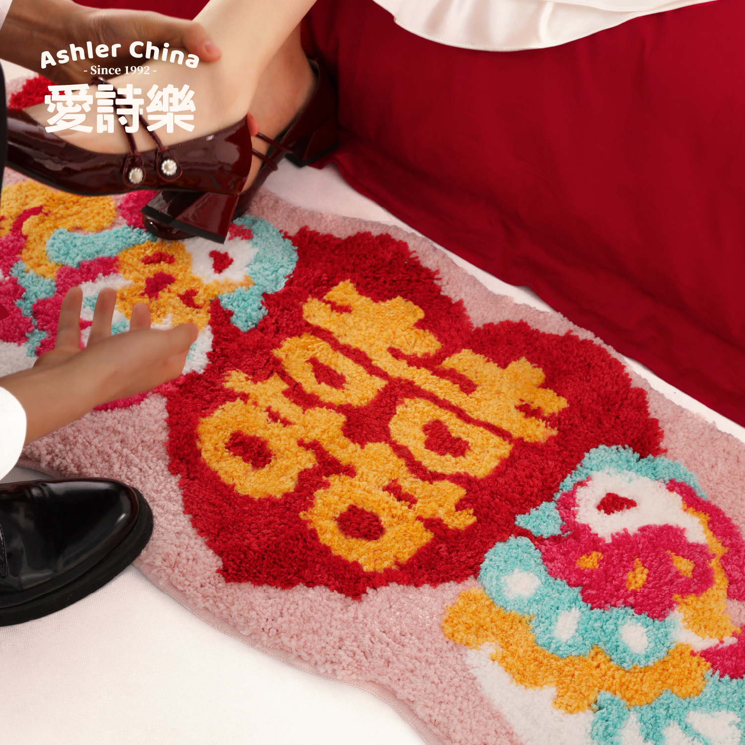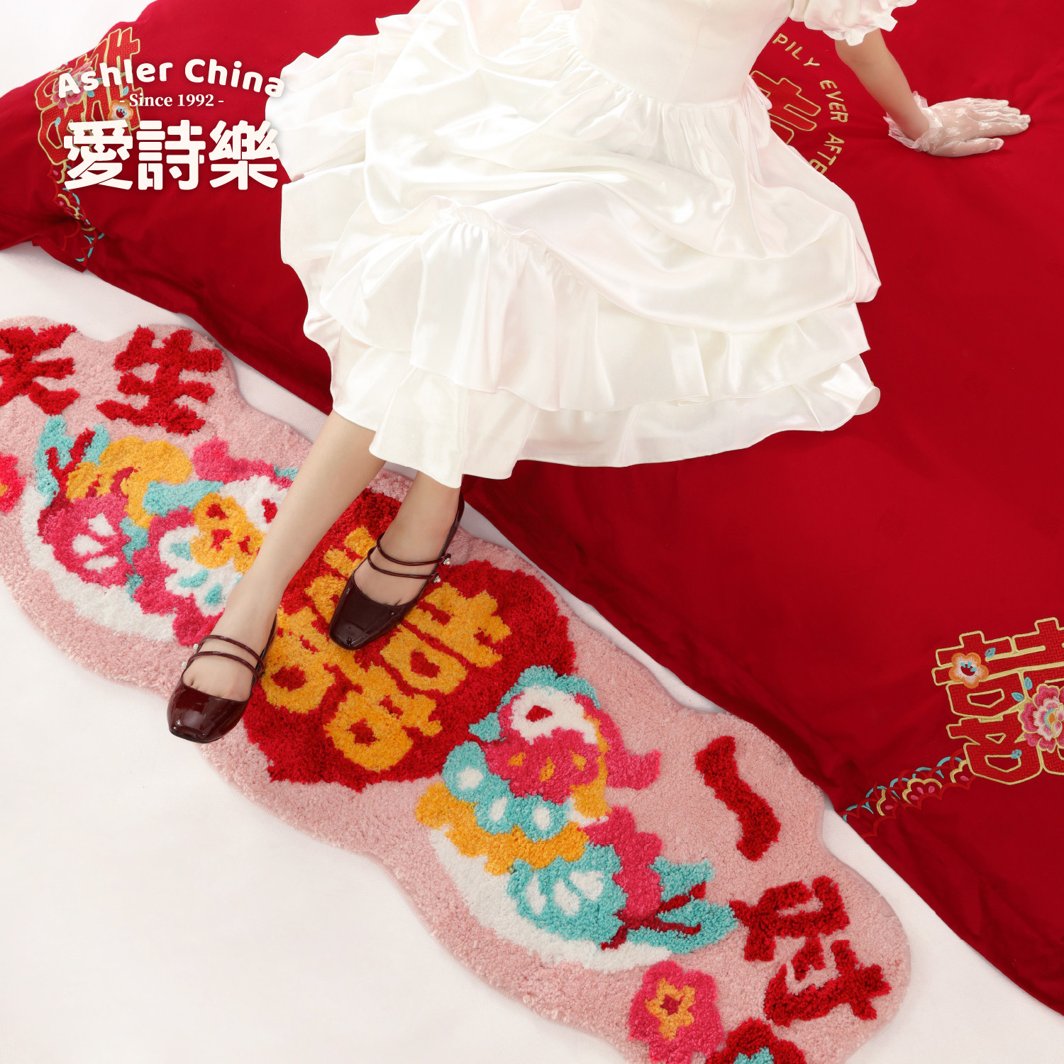 淘宝爱诗乐『鸳鸯囍事』床边毯脚垫婚房卧室地毯结婚喜字异形长条地垫