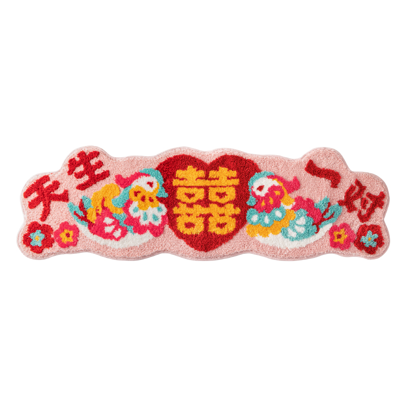爱诗乐『鸳鸯囍事』床边毯脚垫,专为婚房卧室设计,融合传统婚庆元素与现代家居美学。采用优质短绒面料,柔软亲肤、防滑耐磨,脚感舒适,有效保护地板。独特异形长条设计,巧妙融入“囍”字与鸳鸯图案,寓意夫妻恩爱、百年好合,喜庆氛围浓厚。尺寸适中,完美贴合床边、玄关或走廊,兼具实用与装饰功能。易清洁打理,不易藏灰,持久如新。无论是新婚布置还是乔迁贺礼,这款寓意吉祥的地垫都是理想之选,为温馨爱巢增添一抹浪漫与祝福。