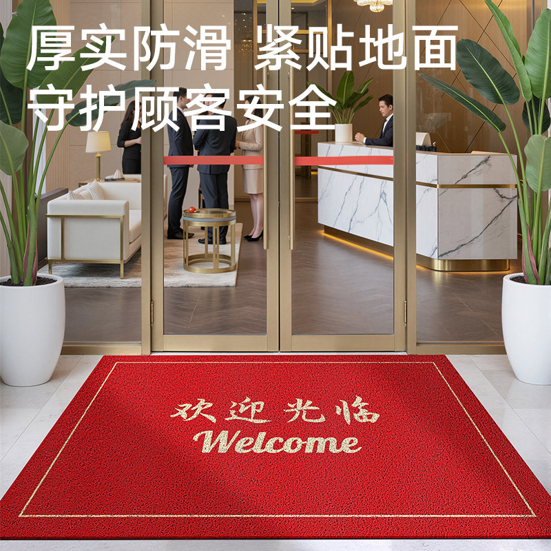 天猫大江商用地垫欢迎光临入户门垫酒店商场门口丝圈地毯红色迎宾脚垫