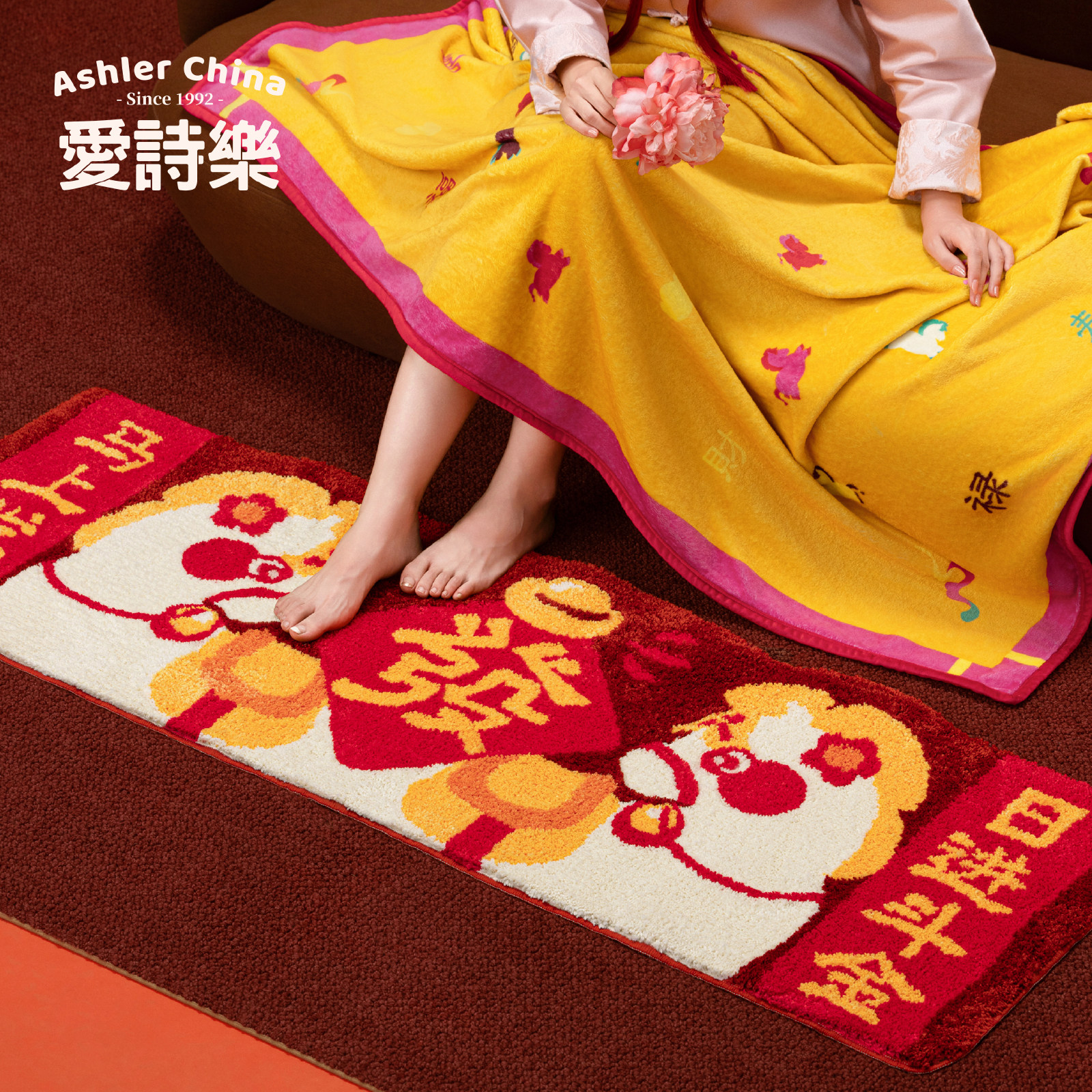 淘宝爱诗乐『好事来樂』床边毯加厚毛绒防滑地垫马年春节喜庆卧室地毯