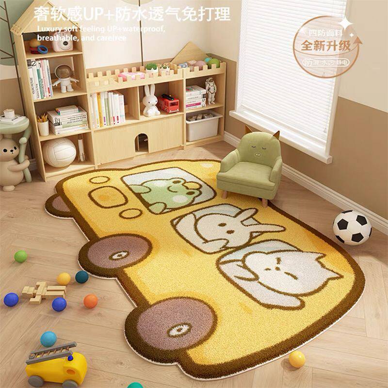 儿童房卡通地毯卧室女孩男孩房间家用可爱毛绒床边毯防滑飘窗地垫