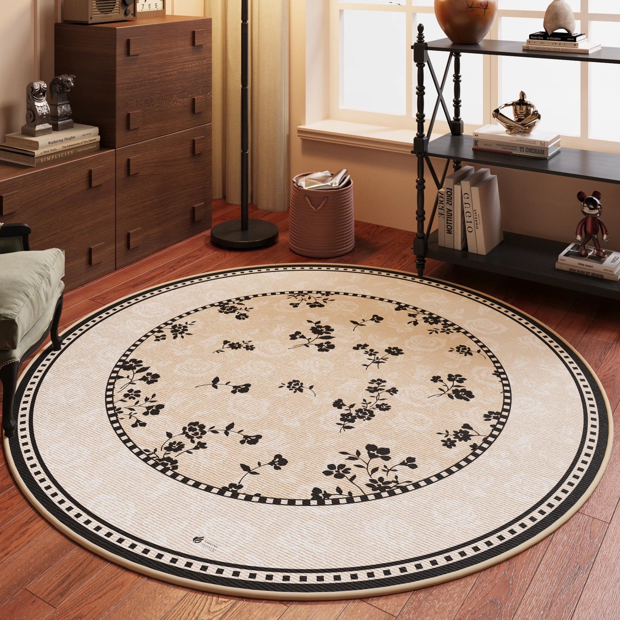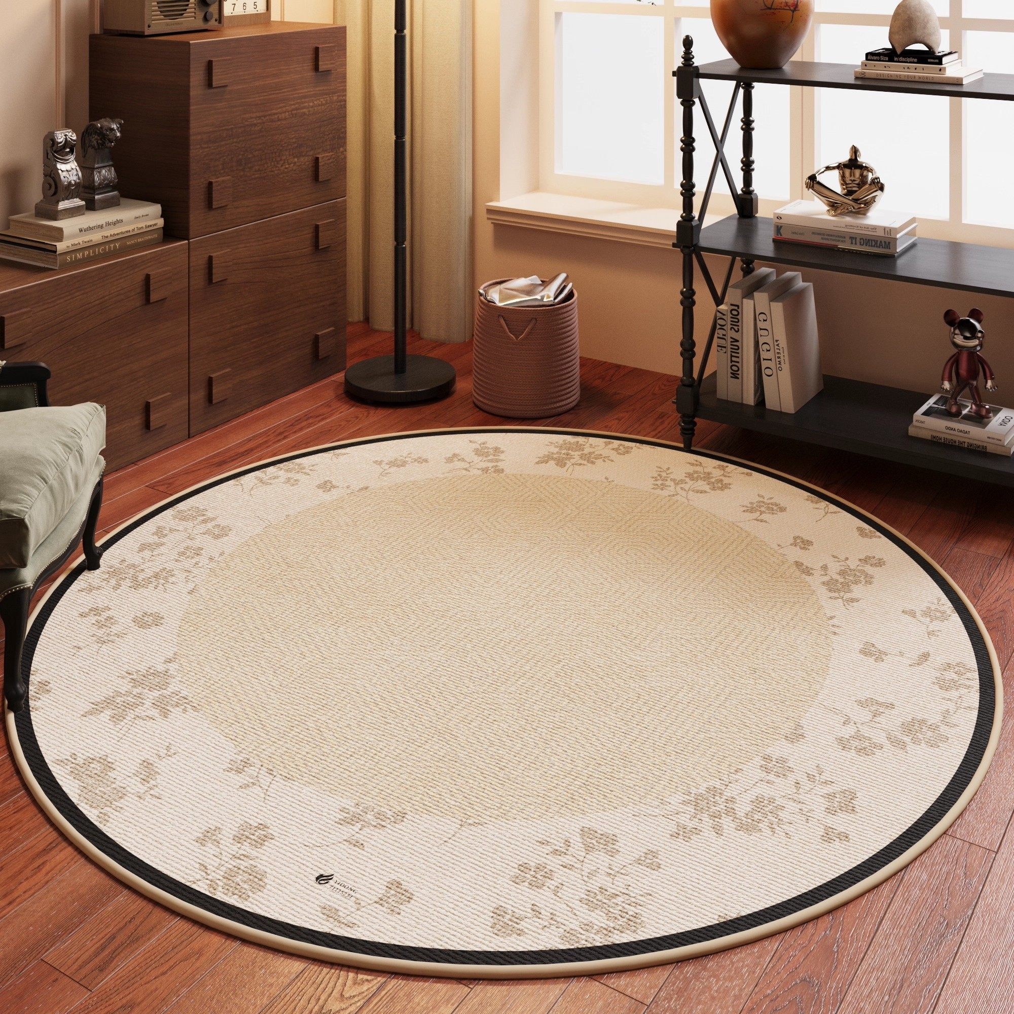 淘宝中古风客厅地毯法式复古圆形地毯衣帽间地垫卧室电脑椅化妆椅子垫