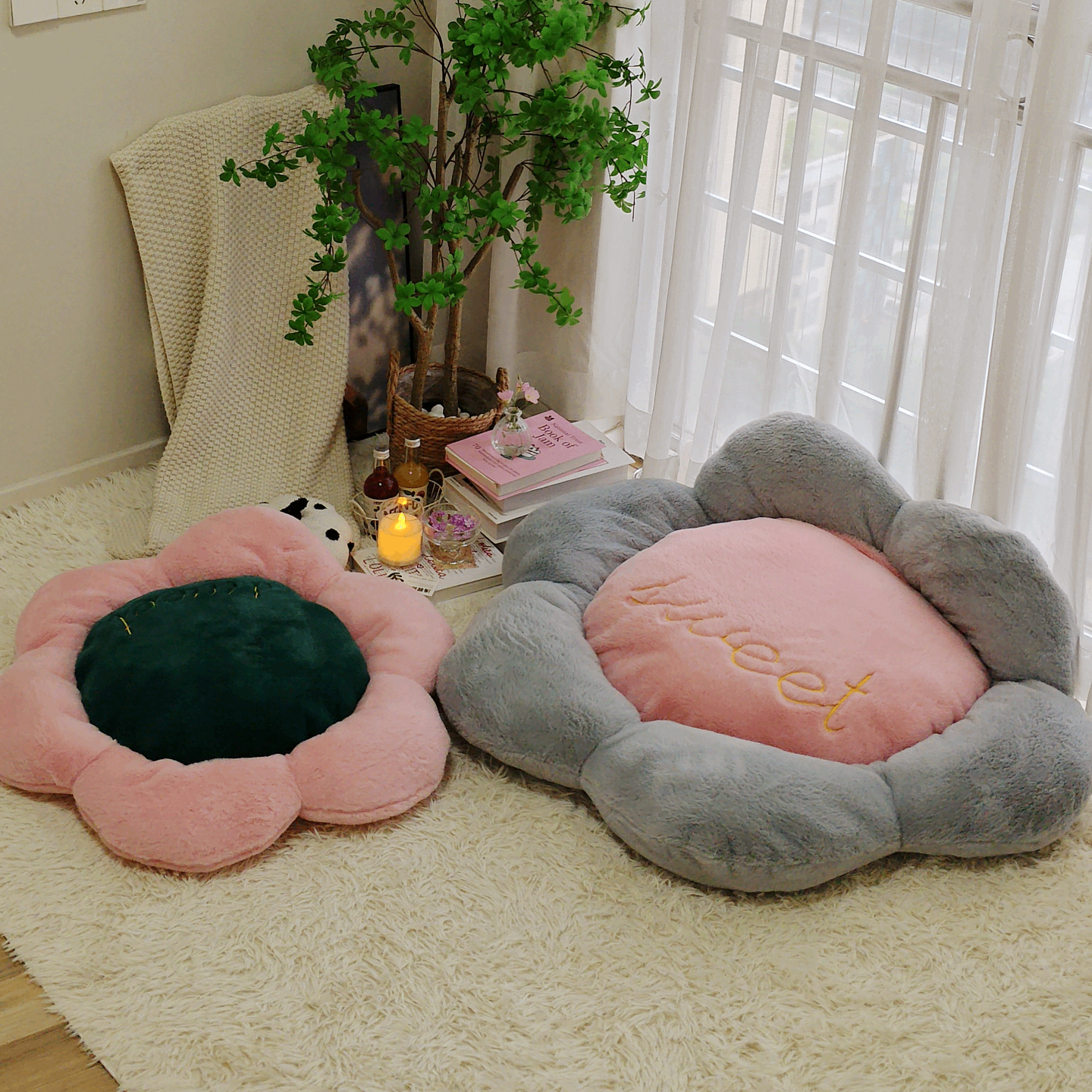 淘宝ins花瓣榻榻米垫子床边地毯格脚垫子阳台地板上懒人蒲团坐垫加厚