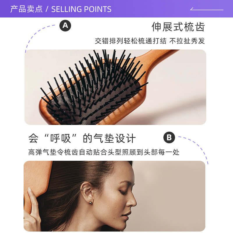 淘蓬松高颅顶梳子头发神器女士专用长发造型按摩经络气囊排骨气垫梳