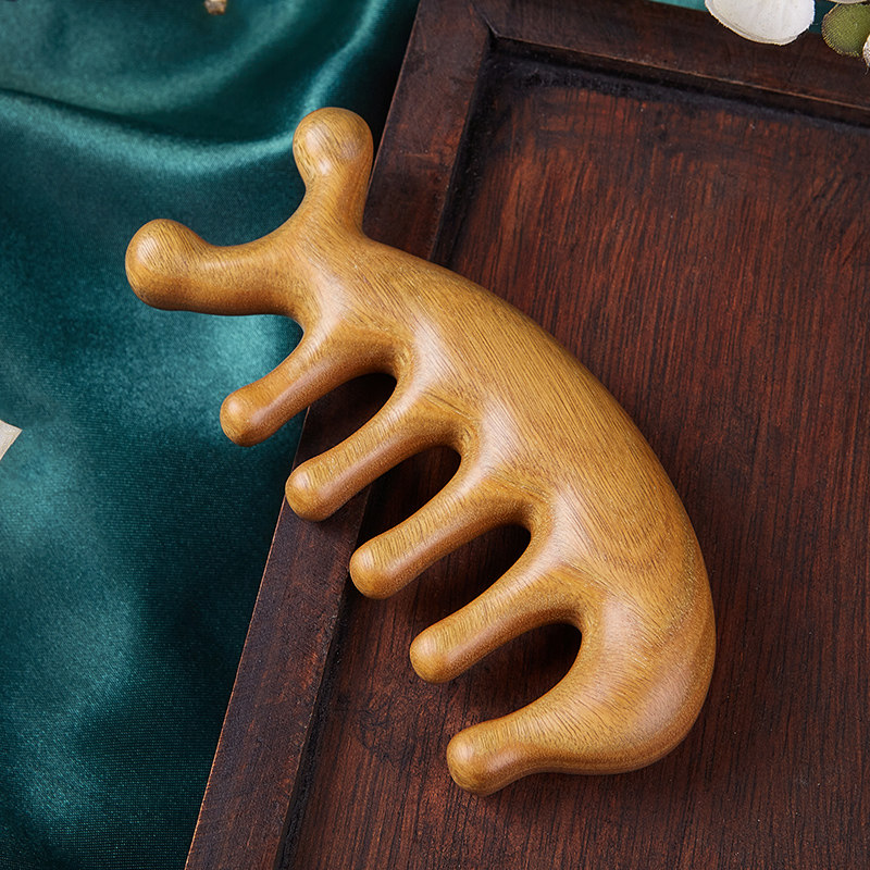 【叶梳匠古树绿檀头皮按摩梳】精选百年野生绿檀木制成,木质坚硬细腻,散发天然檀香,温润不伤发。大齿设计贴合头皮,轻松疏通经络,促进头部血液循环,缓解疲劳与紧张。梳齿圆润光滑,按摩头皮舒适不刮伤,特别适合女性日常居家或外出携带使用。便携小巧设计,随手放入包中,随时随地享受头部SPA。长期使用有助于减少脱发、改善睡眠,是呵护秀发与头皮健康的理想之选。天然材质,环保健康,兼具实用与养生之美,让每一次梳理都成为舒缓身心的美好时刻。