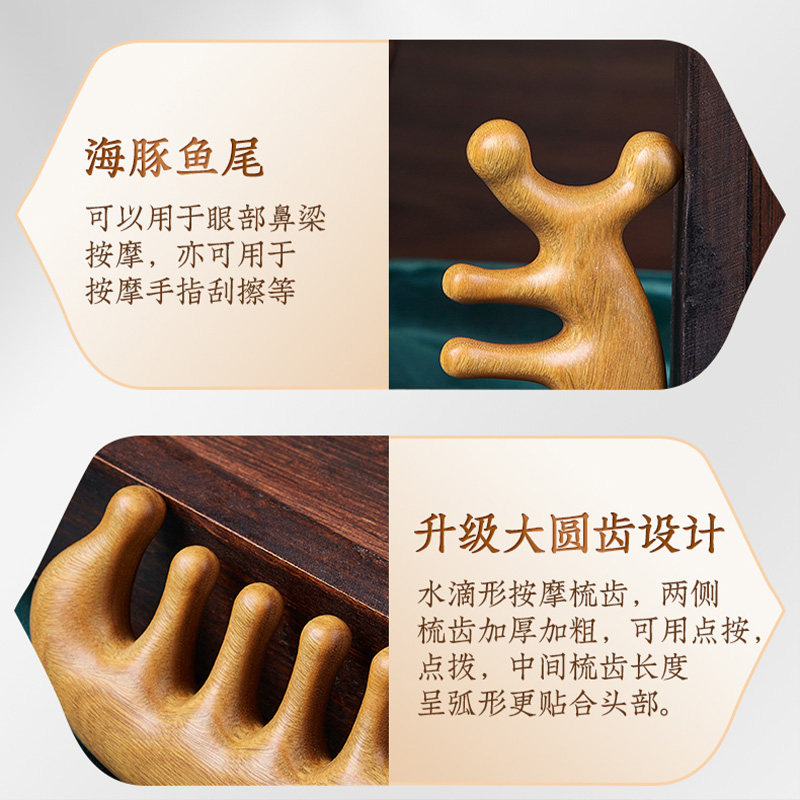 淘宝【叶梳匠古树绿檀头皮按摩梳】便携头部经络梳女士家用大齿木梳子
