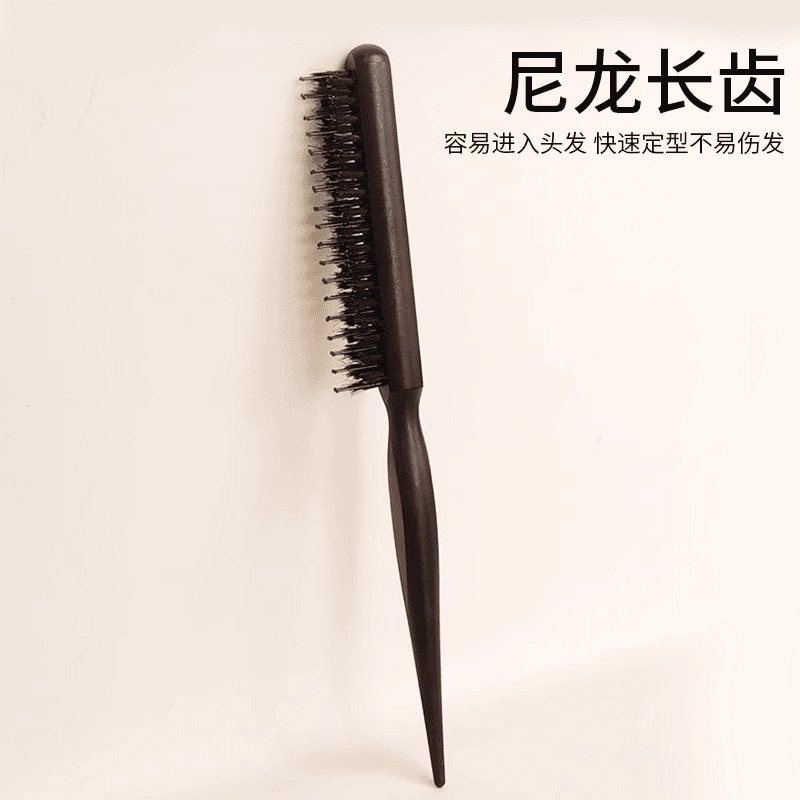 淘宝猪鬃毛窄齿梳美发三排打毛梳子蓬松造型长柄化妆尖尾盘发卷发木梳