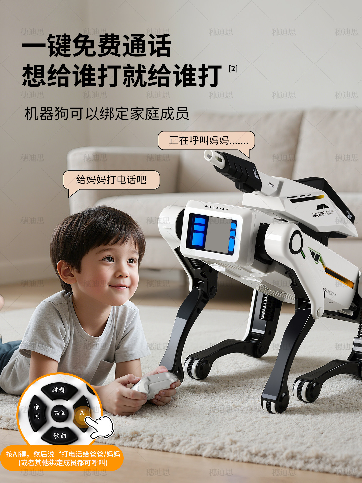 2025新款电子狗机器人,融合前沿AI科技与趣味互动,是专为男孩打造的智能黑科技玩具。它具备语音识别、人脸识别和情绪反馈功能,能听懂指令、回应呼唤,甚至通过表情和动作表达“喜怒哀乐”。支持图形化编程,孩子可通过APP自由设计动作与任务,培养逻辑思维与创造力。内置多种传感器,可避障、跳舞、巡逻,还能连接智能家居,成为家庭小助手。高仿真外形搭配流畅动作,宛如真实宠物,陪伴孩子成长。安全材质、耐用设计,兼顾趣味与教育意义,是送给男孩子的理想礼物,开启智能玩伴新体验。