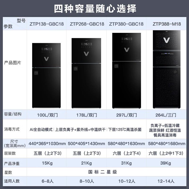 天猫Vatti/华帝消毒柜家用立式大容量紫外线负离子高温餐具筷子碗柜