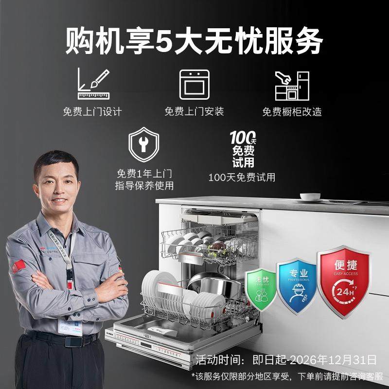 【焕新补贴】博世Z10黑骑士二代嵌入式18套沸石烘干抑菌洗碗机,集高效清洁与智能呵护于一体。搭载先进沸石烘干技术,利用天然矿物吸湿放热,实现快速、低能耗烘干,有效抑制细菌滋生,呵护家人健康。18套大容量设计,轻松应对多口之家聚餐需求,嵌入式安装节省空间,彰显现代厨房美学。支持多种智能洗涤程序,精准应对不同污渍,节能省水更环保。现参与焕新补贴活动,旧机抵扣享优惠,升级品质生活更轻松。博世精工品质,值得信赖,让洁净与安心常伴厨房每一刻。