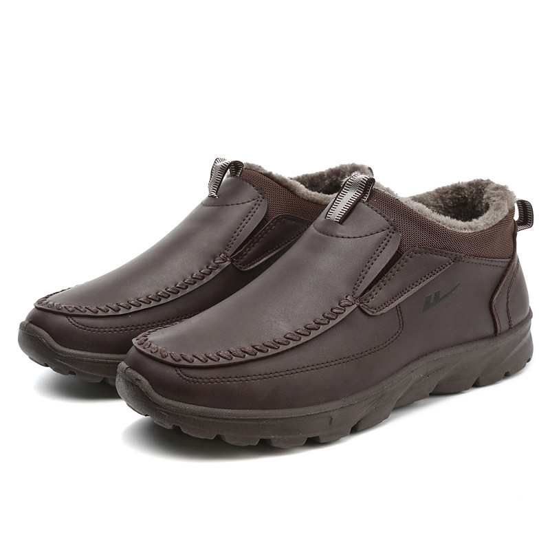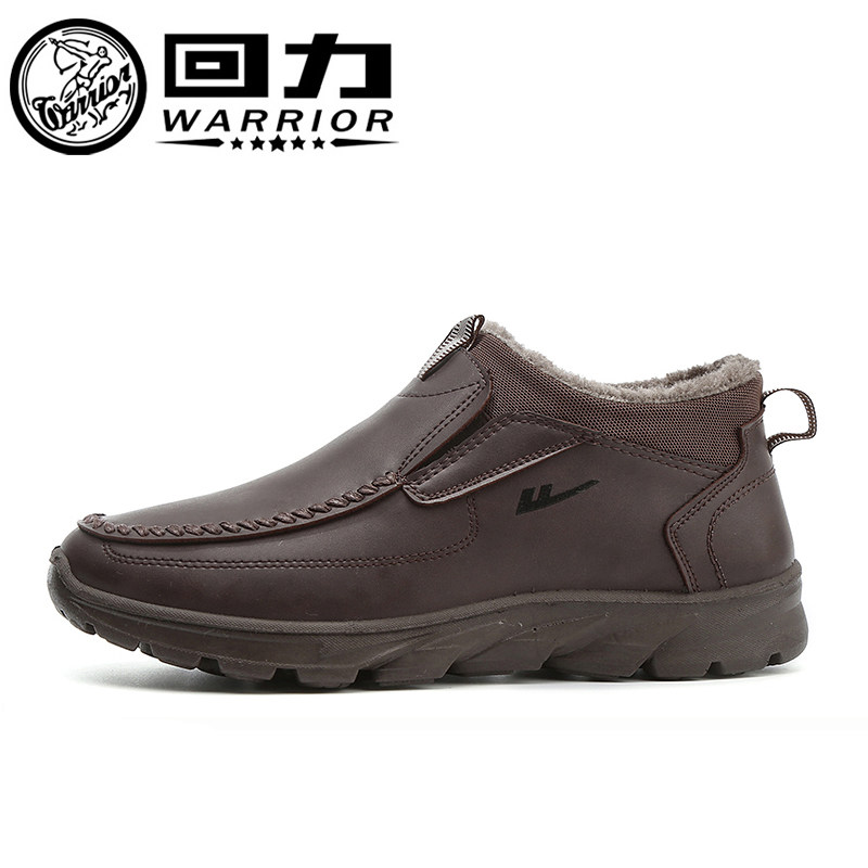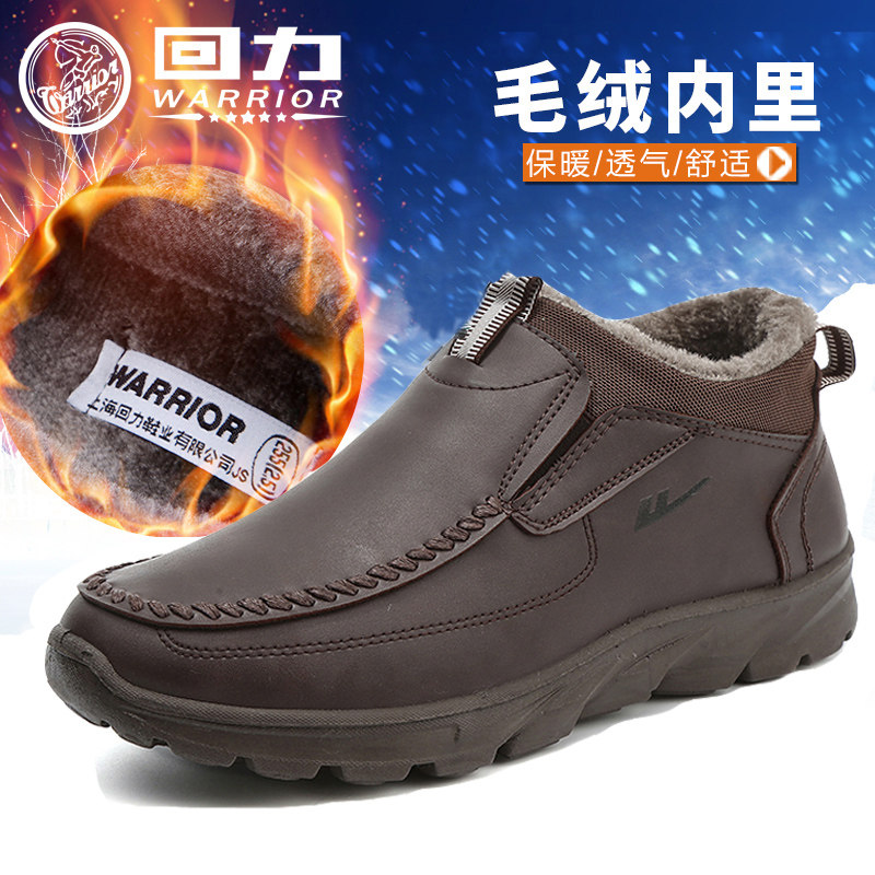淘宝回力保暖男鞋休闲鞋轻便防滑一脚蹬秋冬季加厚加绒皮面男士鞋