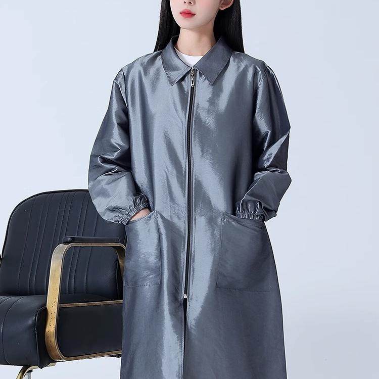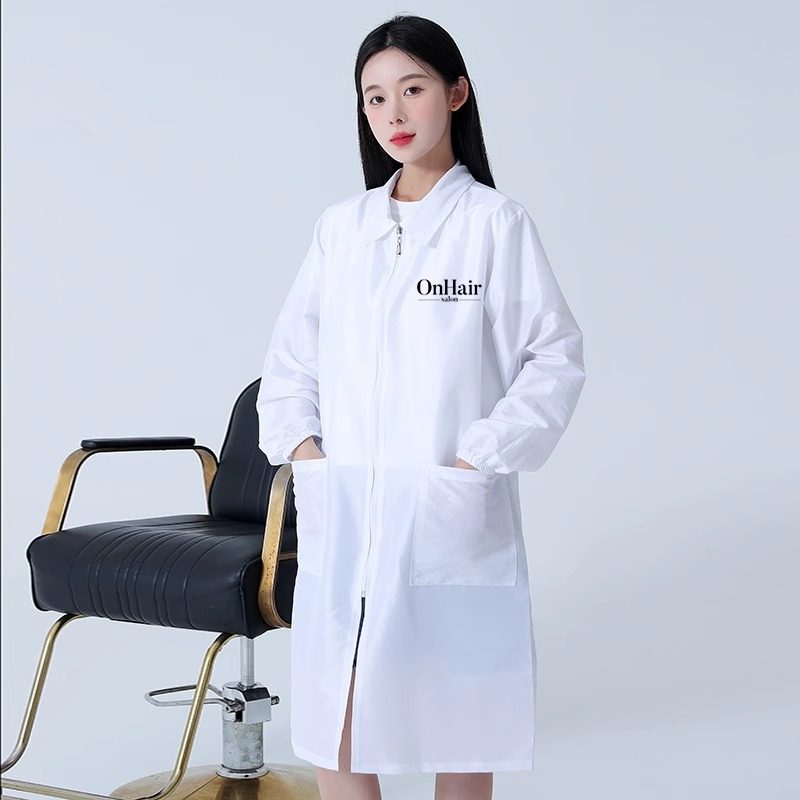 这款专为发廊设计的发型师工作服,采用高密度防渗透面料,有效阻隔碎发、染发剂及焗油膏沾染,保持衣物洁净。立体剪裁贴合身形,活动自如,适合剪发、烫染、护理等多种美发操作。前襟加长防污罩面,袖口收紧设计,防止发屑钻入,清洁更便捷。多口袋配置便于收纳剪刀、梳子等工具,提升工作效率。适用于发型师、助理、烫染技师等岗位,兼具专业性与实用性。耐洗耐磨,久用不易变形,是理发店团队统一形象、提升服务品质的理想选择。简约时尚外观,彰显专业美发人的职业风采。