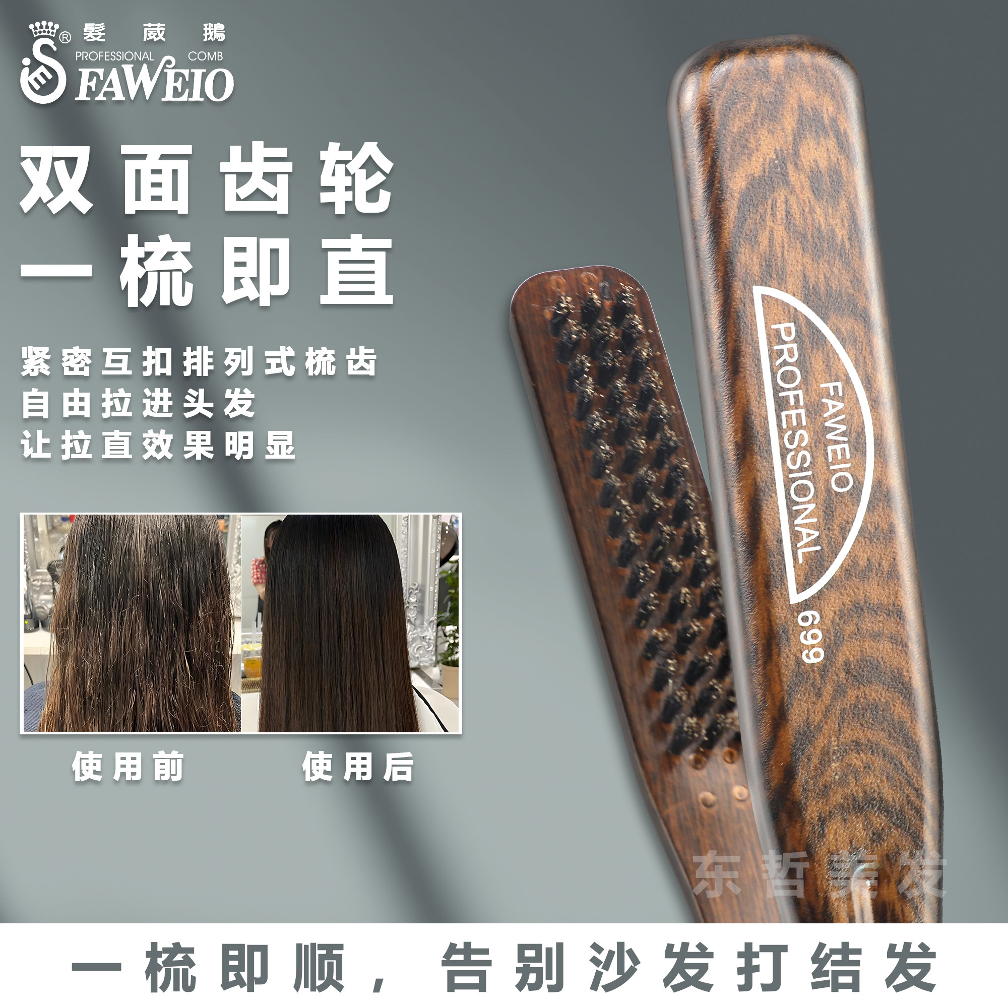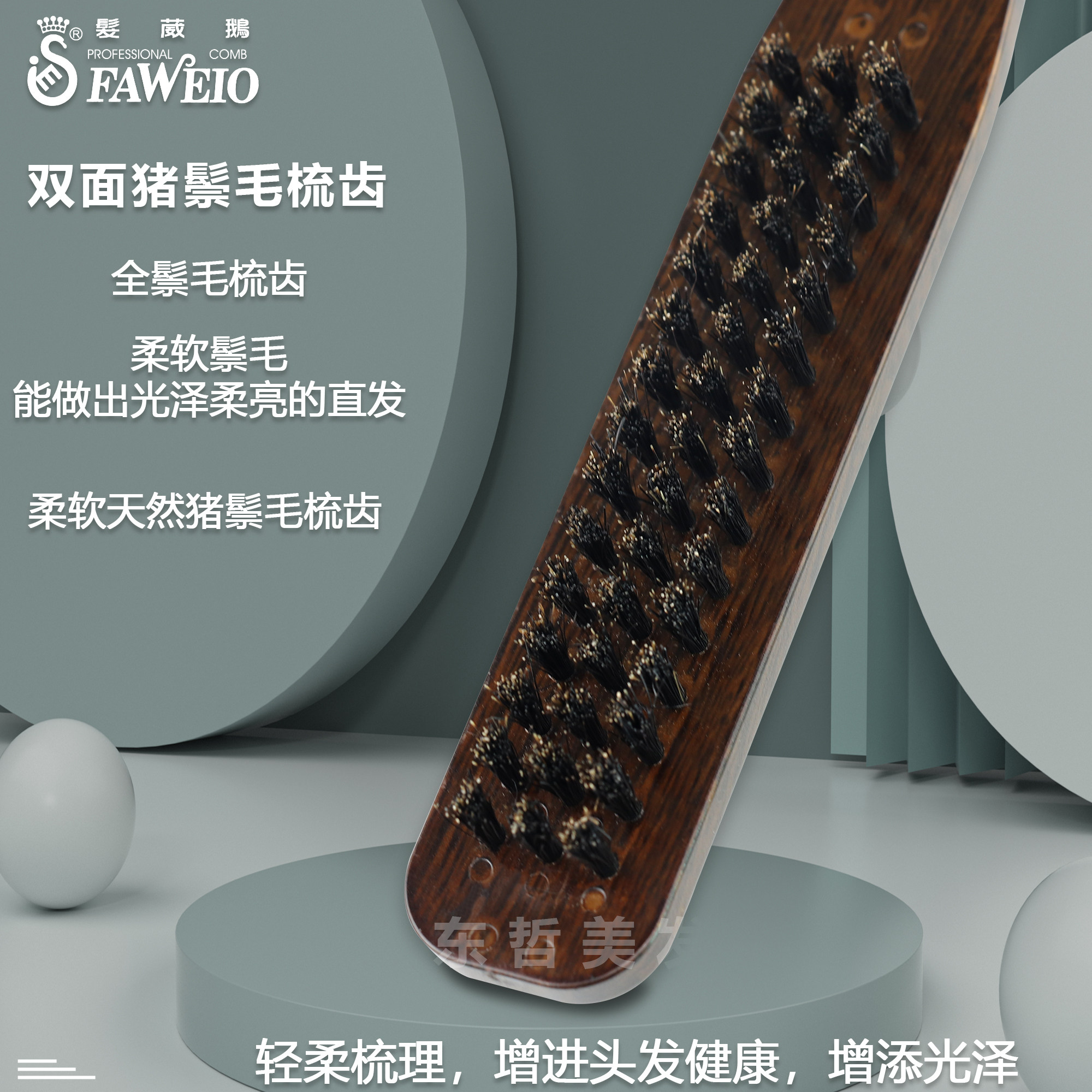淘宝台湾进口发葳鹅FAWEIO全猪鬓毛猪鬃毛V型直发梳一次性离子烫顺直