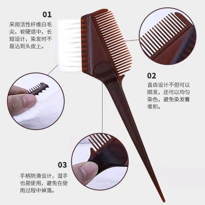 这款专业美发染膏工具——焗油染发梳子,专为烫染及护理设计,采用软毛加厚双面刷头,触感柔软,不伤头皮,均匀涂抹染膏与护发产品。一面为精细梳齿,便于分区上色,精准控制;另一面为宽幅刷毛,适合大面积快速涂抹焗油、倒膜等护理产品。特别适用于白发遮盖及深层滋养护理,提升上色均匀度与效率。材质安全耐用,易清洗,适合沙龙专业使用或家庭DIY。无论是染发、焗油还是营养倒膜,都能轻松操作,让美发过程更便捷、高效,是美发师与爱美人士的得力助手。