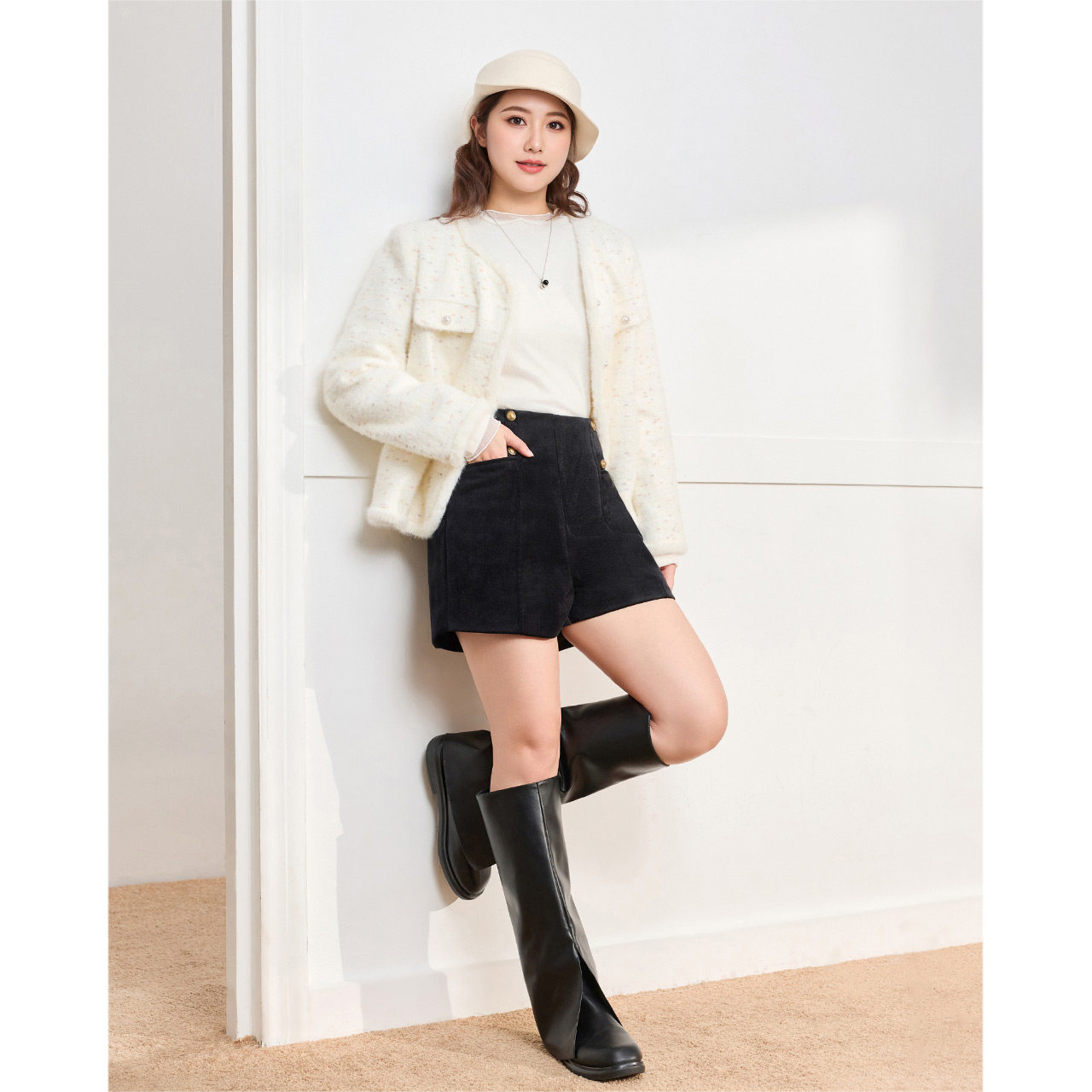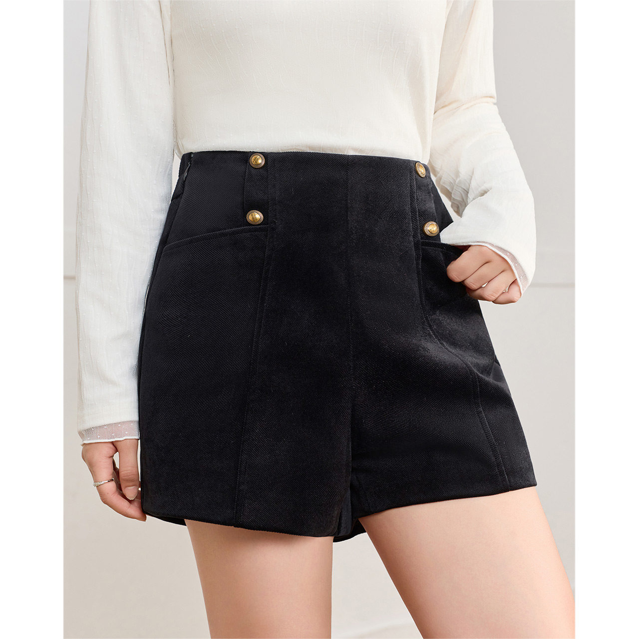 IEF/爱依服【大码女装】2025年冬季新款外穿短裤,专为追求舒适与时尚的大码女性设计。采用高弹亲肤面料,包容性强,轻松修饰腿型,久坐不勒腰。宽松休闲版型搭配微阔裤脚,视觉显瘦又显腿长,兼具慵懒与利落感。内里加绒设计,保暖不臃肿,冬季外穿也温暖舒适。多色可选,轻松搭配毛衣、卫衣或大衣,打造随性时髦的冬日造型。无论是日常通勤还是休闲出行,这条短裤都能让你自在自信,展现独特魅力。IEF以匠心工艺与贴心剪裁,重新定义大码女装的时尚边界。