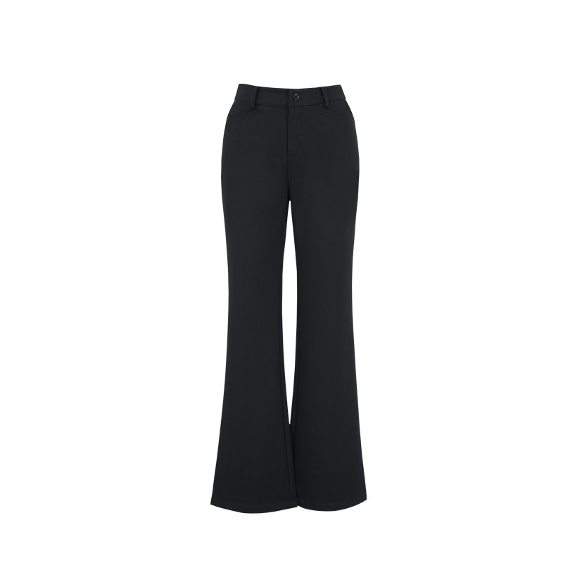 2025冬季新品百丝高腰长裤黑色显瘦修身通勤休闲西裤微喇裤女