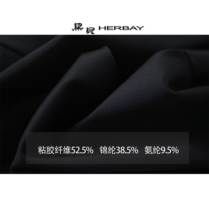 淘宝黑贝女裤HERBAY春款新品高腰弹力显瘦气质与腿型塑造薇喇叭西裤