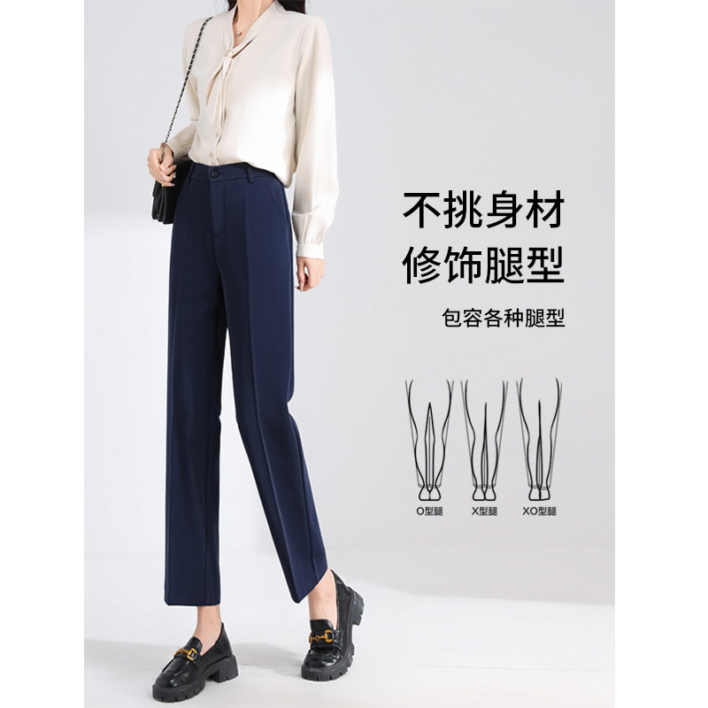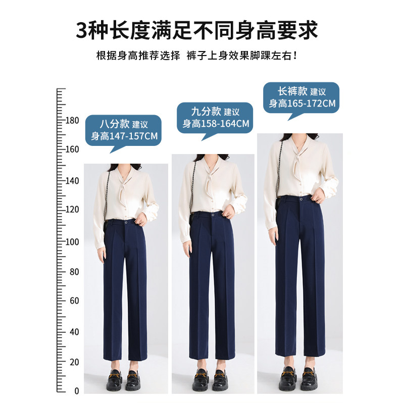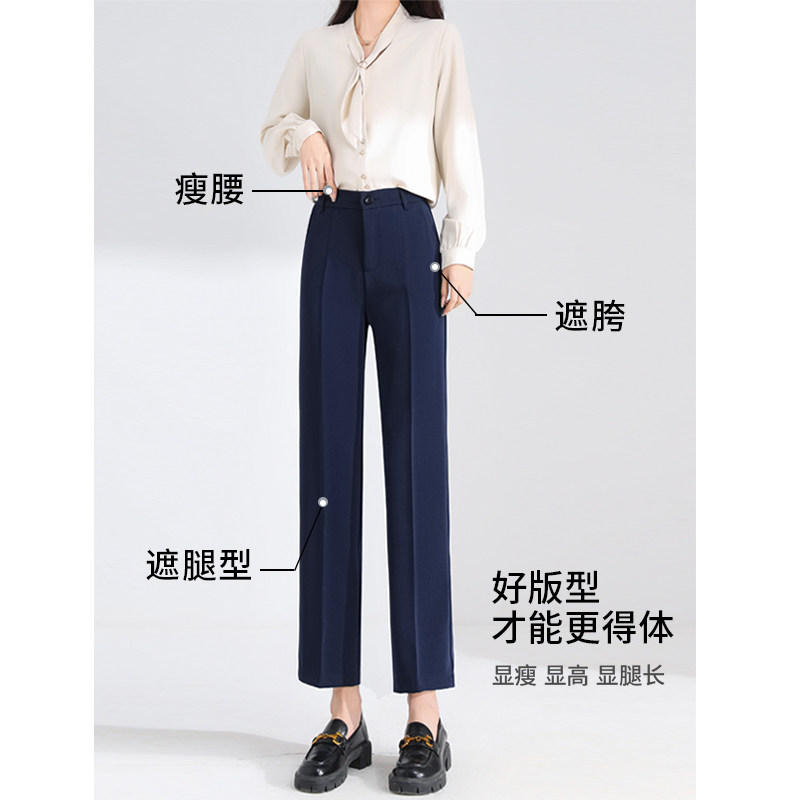 天猫松紧腰藏青黑色直筒裤女春夏新款高腰垂感西裤九分面试工装职业裤