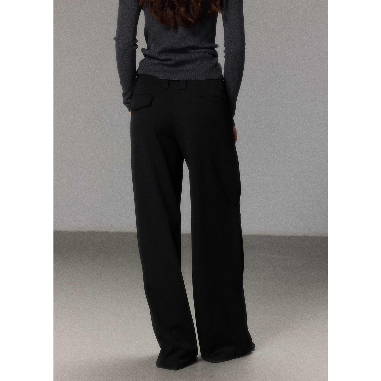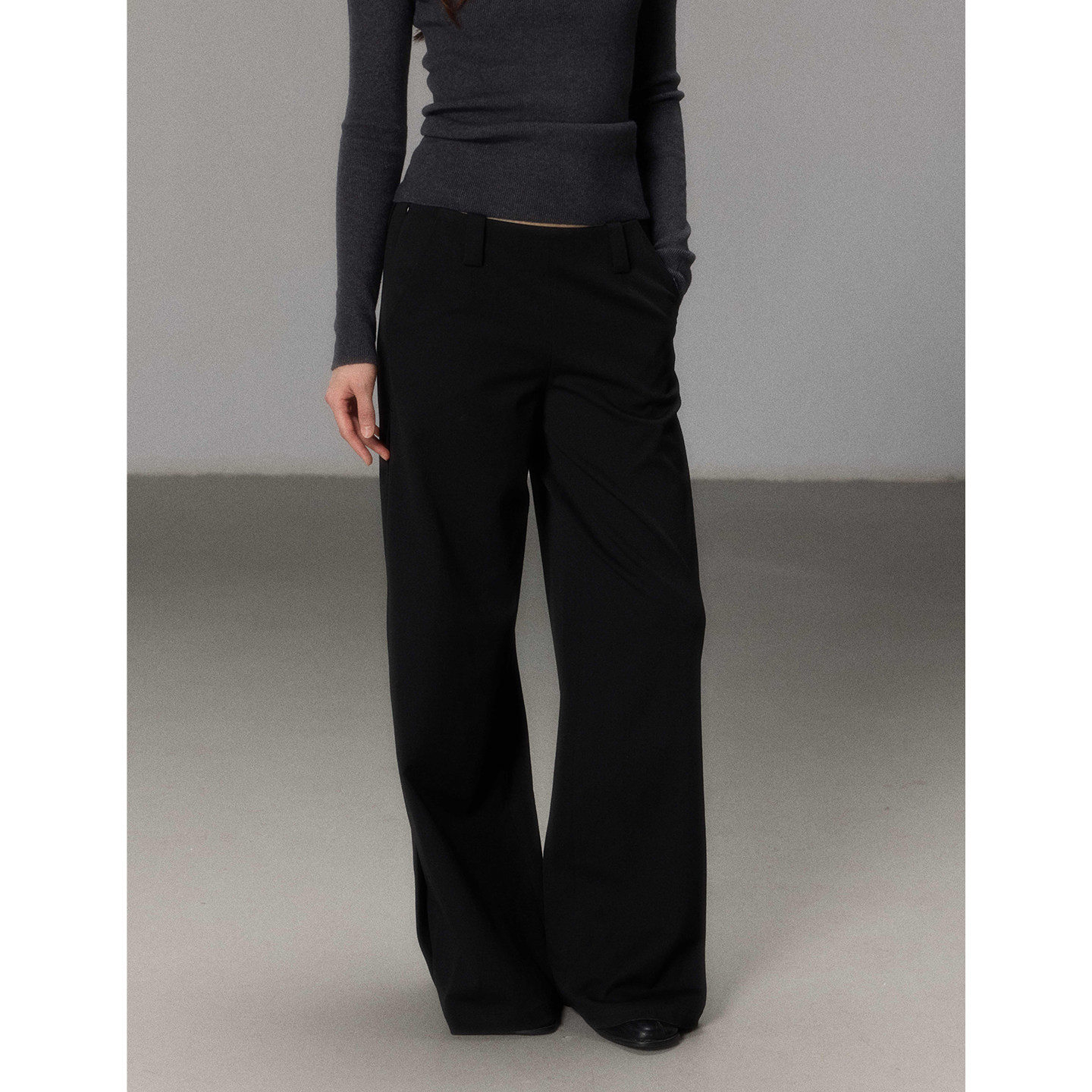 淘宝贰羊设计【醉墨】复古休闲加厚中低腰长裤女抗皱弹力垂感黑色西裤