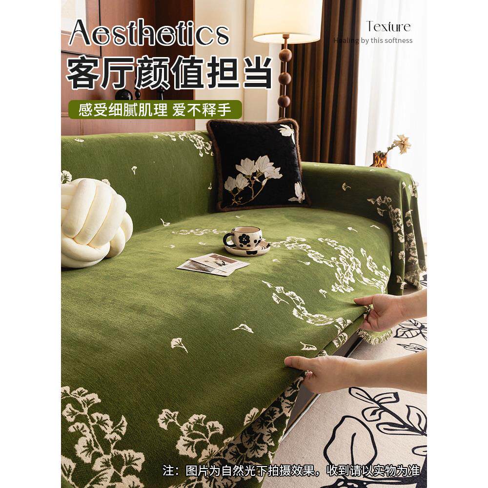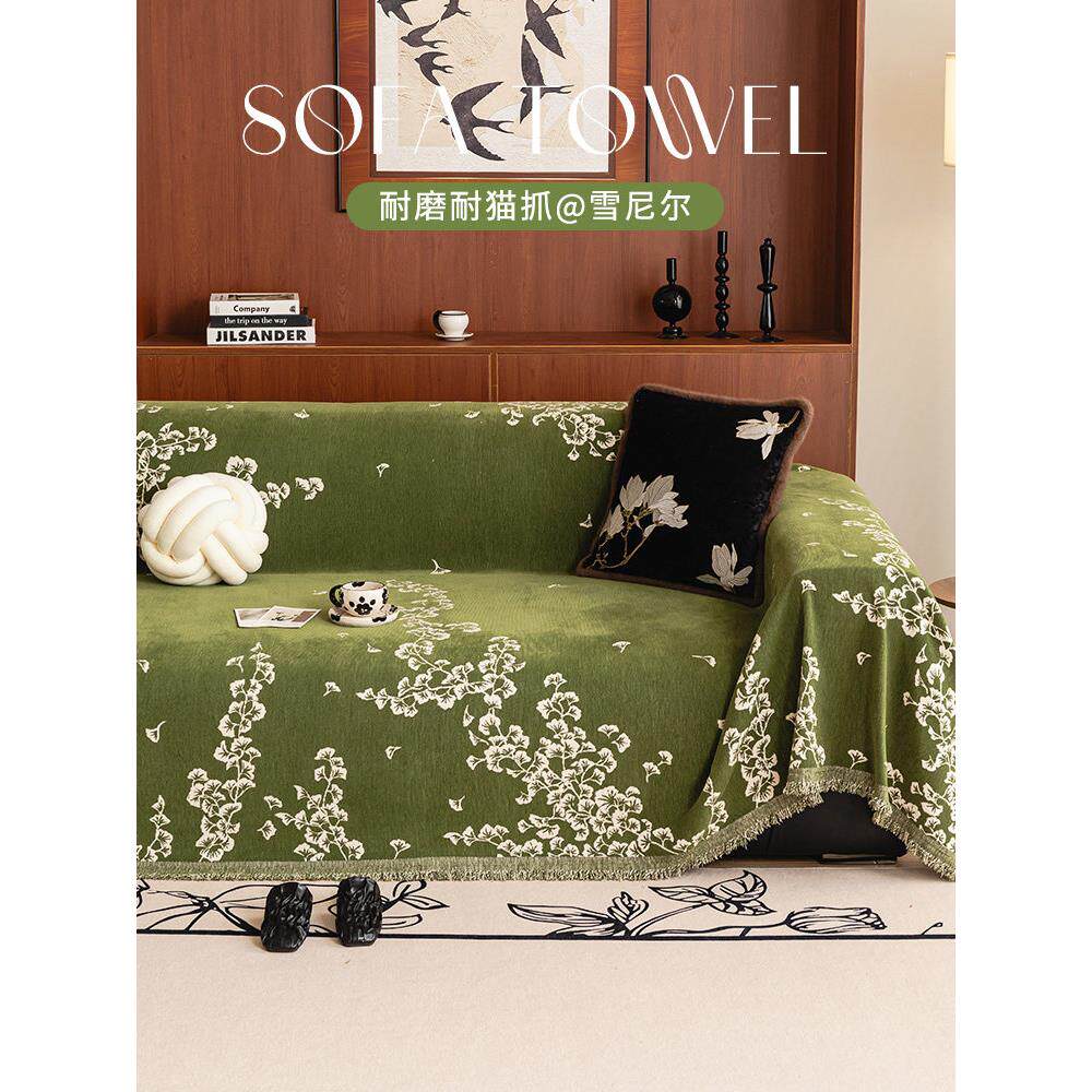 淘宝中世纪风格沙发毛巾2025全新四季通用高端全包套防猫抓垫套毛毯