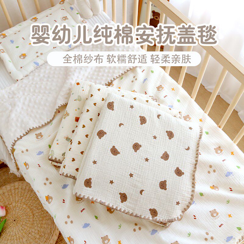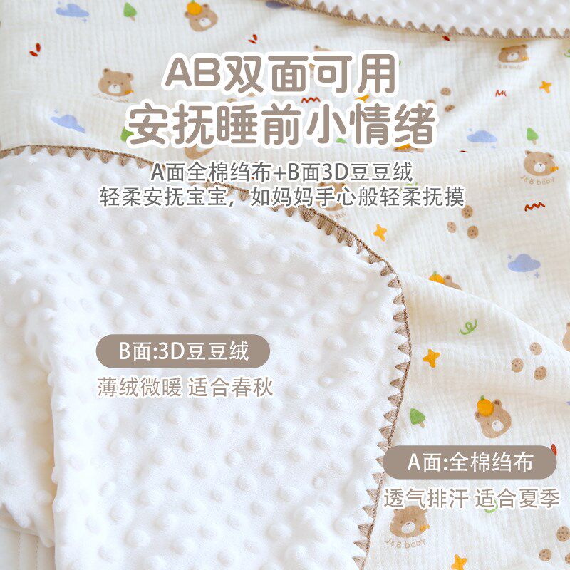 淘宝婴儿盖毯纯棉纱布新生宝宝安抚豆豆毯幼儿园儿童午睡毛毯四季通用