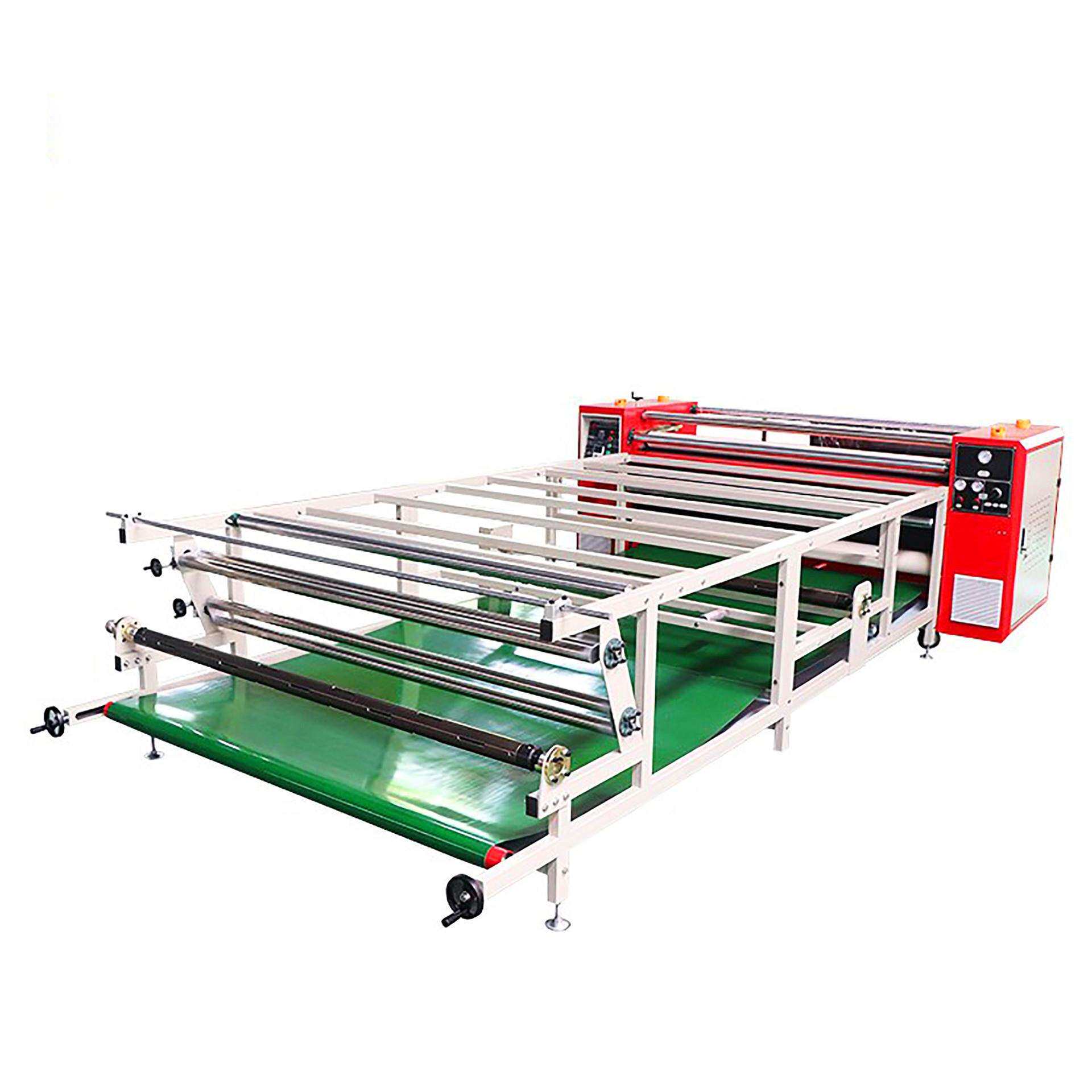 地毯毛毯滚筒热转印机是一种高效、连续式的数码印花设备,专为涤纶布、服装面料、窗帘及各类化纤纺织品设计。该设备采用滚筒加热与同步走料系统,配合分散染料墨水,通过高温热转印工艺将图案精准转印到织物表面,色彩鲜艳、色牢度高、手感柔软。适用于大批量生产加工,广泛应用于家居装饰、服装制造及广告宣传等领域。其自动化程度高,操作简便,能显著提升生产效率与印花品质,是现代纺织印花行业的重要设备之一。