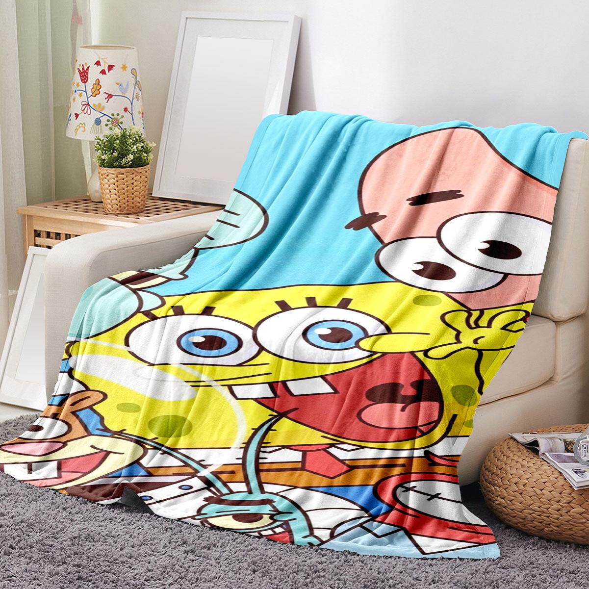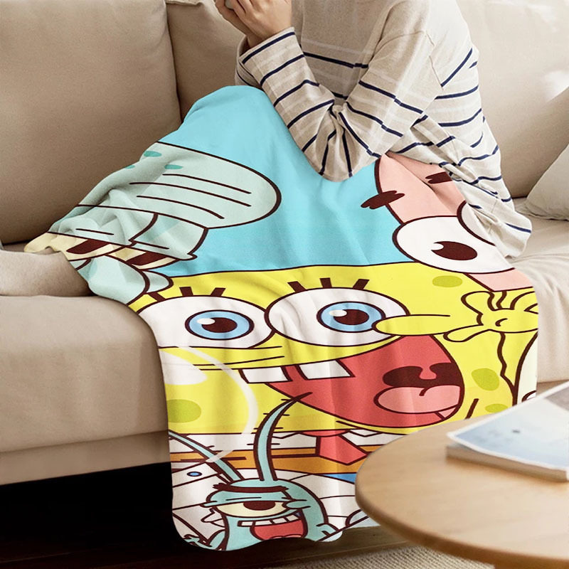 淘宝法兰绒毛毯海绵宝宝谢老板派大星空调毯午休毯宿舍卡通背景装饰