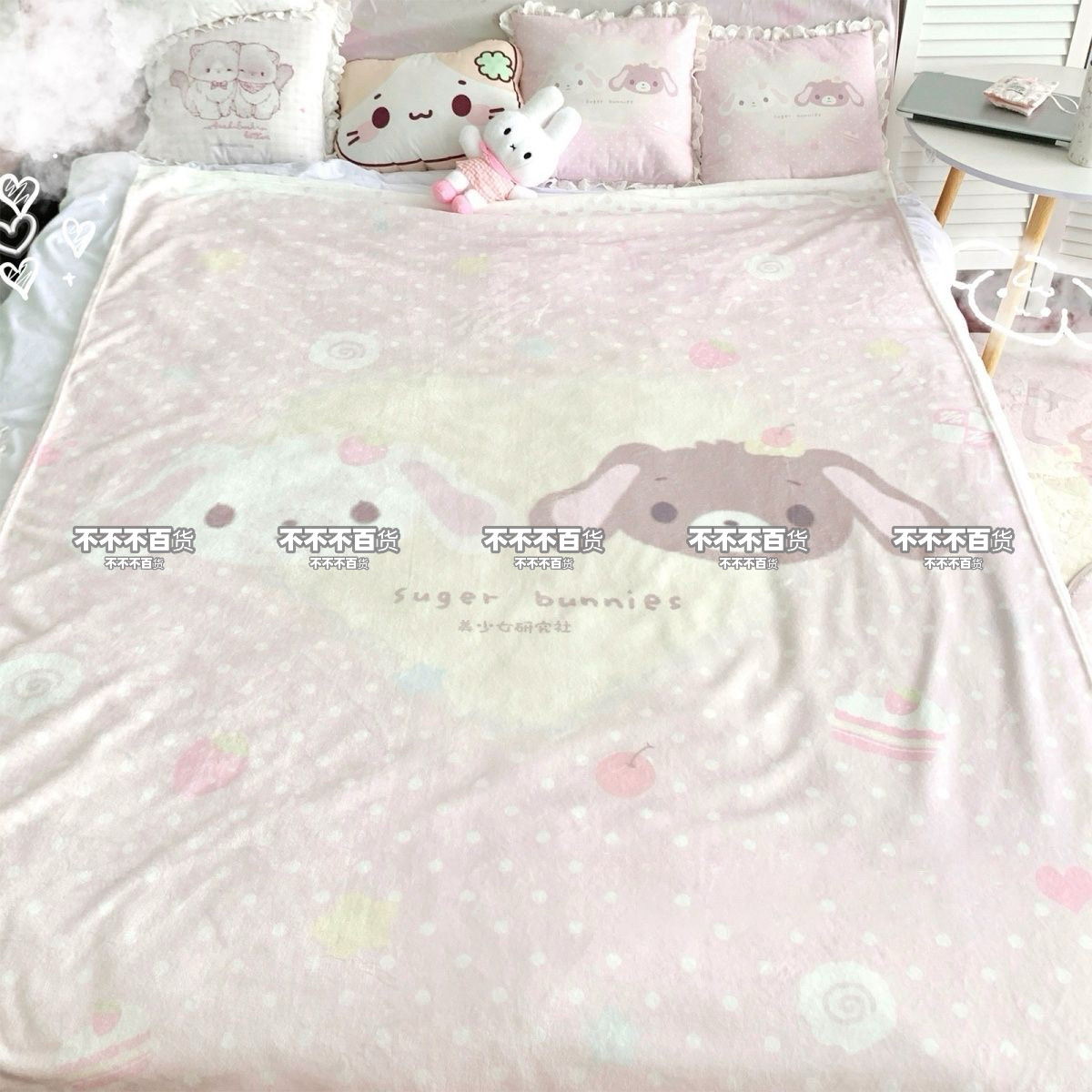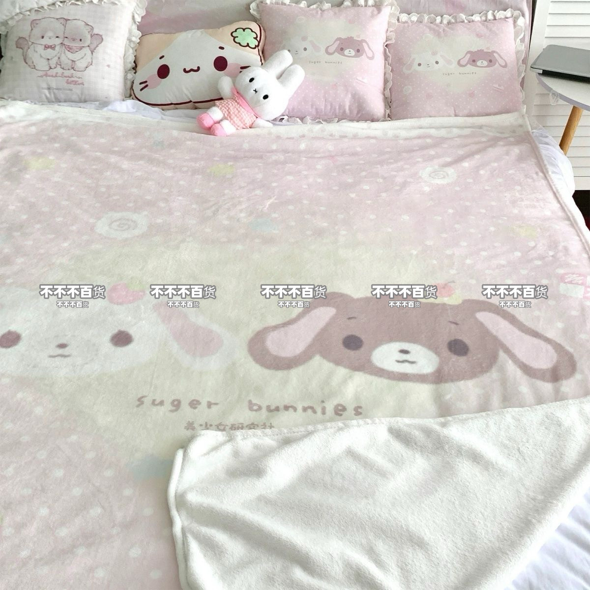 淘宝原创甜点兔毛毯法兰绒午睡毯保暖四季空调毯可爱卡通宿舍毯