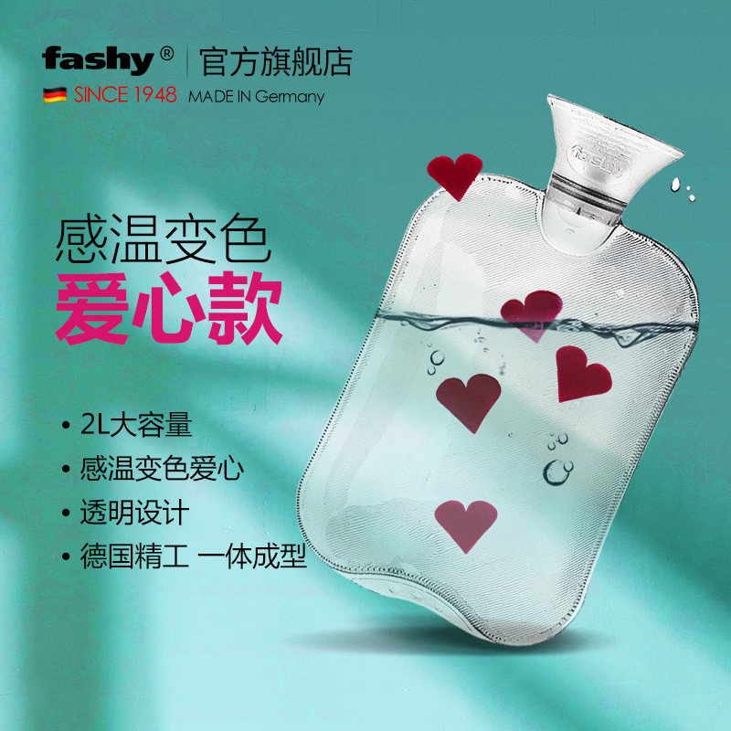 天猫德国进口fashy 感温变色爱心热水袋 暖水袋 暖手宝6236 2L 送外套
