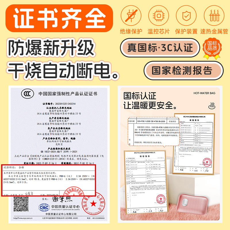 这款热水袋充电款式为3C认证防爆正品,安全性能卓越,通过国家强制性产品认证,使用更放心。采用优质防爆材料,内置智能温控系统,过热自动断电,有效防止干烧和爆炸风险。充电快速,保温持久,可持续发热数小时,温暖不中断。外观小巧可爱,设计时尚,适合女生日常暖手、暖腹、暖宫使用。柔软亲肤材质,触感舒适,携带方便,是冬季居家、办公、出行的贴心伴侣。无论是自用还是送人,都是温暖又实用的暖心之选。选择正品电暖宝,安全暖冬从这款暖宝宝开始。