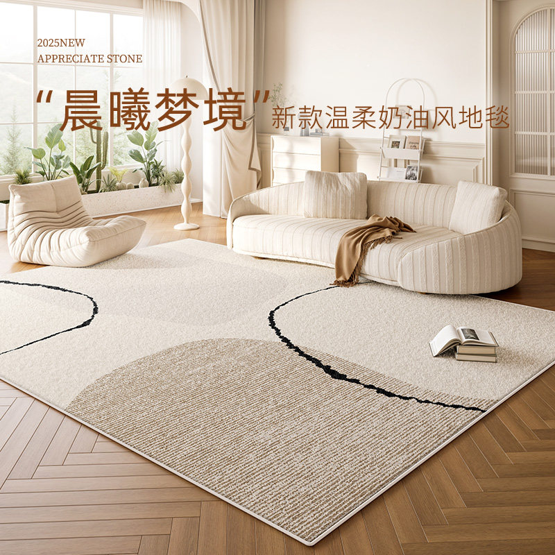 天猫奶油风地毯客厅2025新款卧室全铺大面积免洗可擦防水防污地垫定制