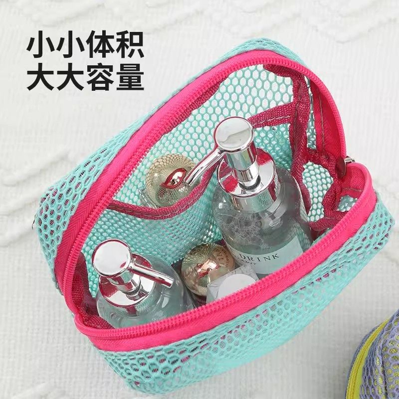 淘宝多巴胺豆腐包迷你网纱便携旅行洗漱化妆品收纳包补妆包网格杂物包