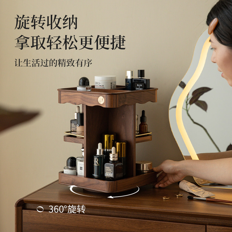 淘宝旋转化妆品收纳盒桌面高级首饰盒护肤香水梳妆台置物架木生日礼物