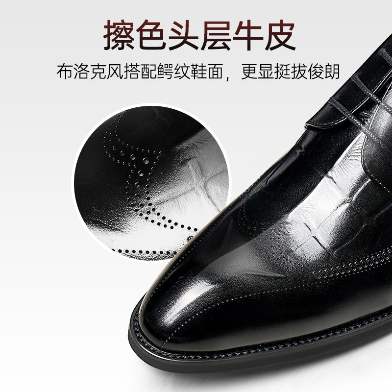 冬季皮鞋男新款商务正装休闲真皮英伦风内增高软皮男鞋结婚新郎鞋