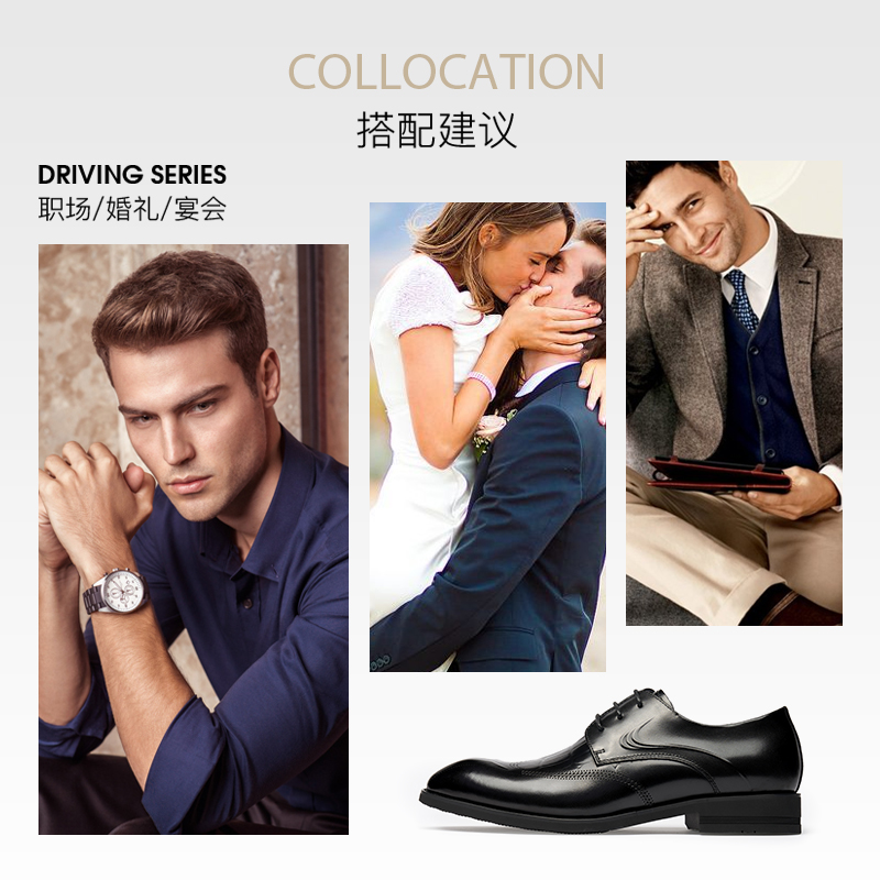 天百丽男士冬季新款休闲商务正装皮鞋三接头厚底内增高婚鞋B3229AM2