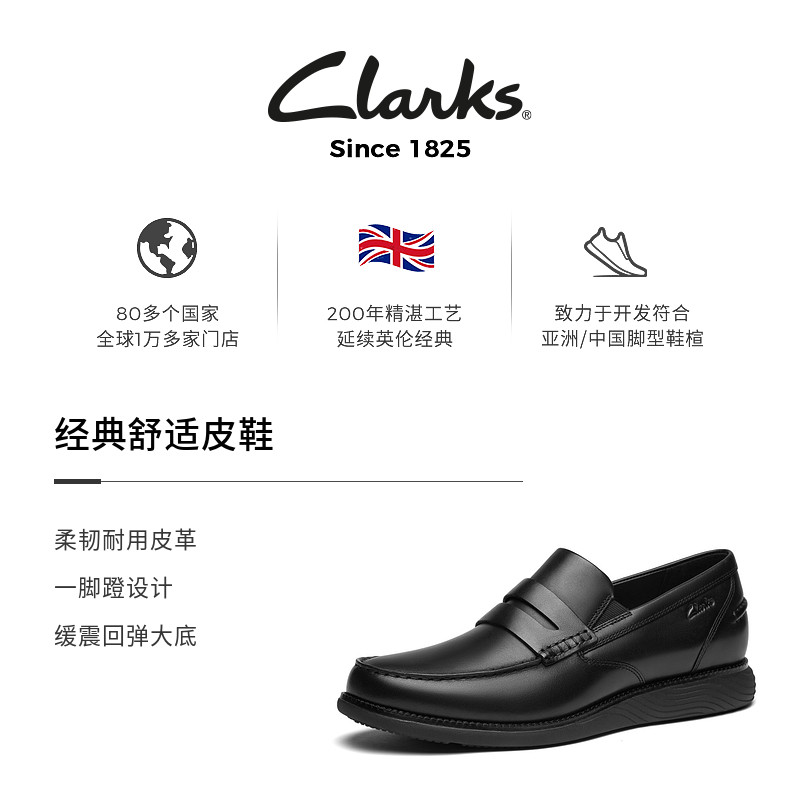 天猫Clarks其乐Novajoy Slip男鞋新款经典舒适一脚蹬商务通勤正装皮鞋