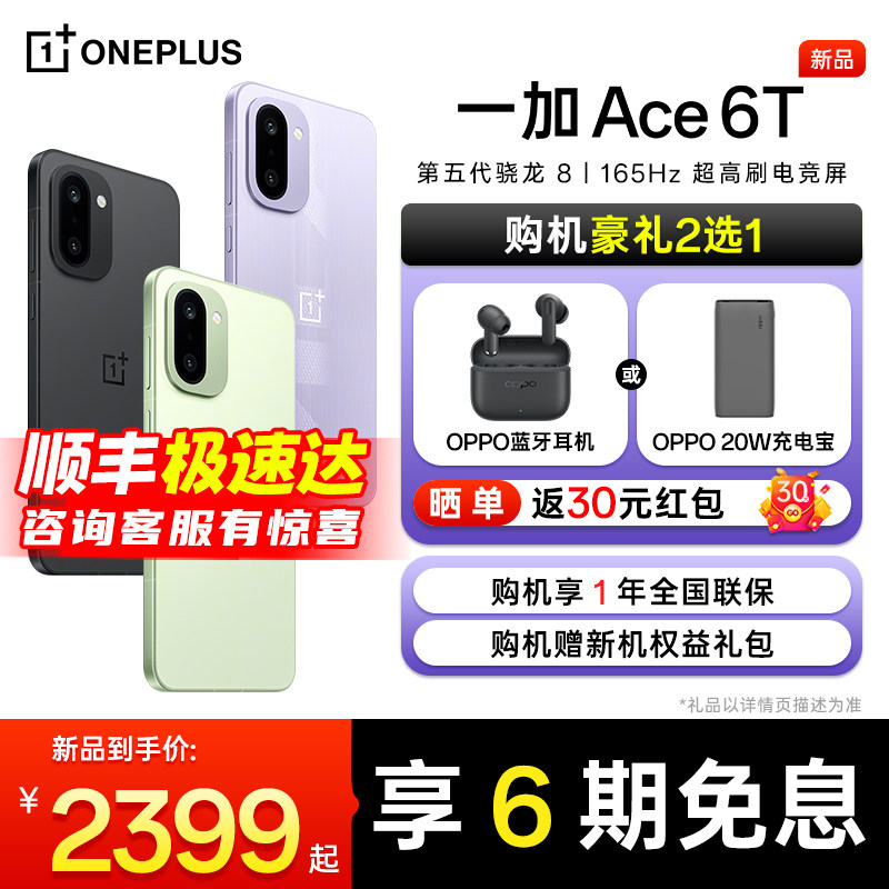 【购机送豪礼】OPPO一加Ace6T震撼上市!全新5G智能机搭载强劲性能芯,流畅体验再升级,高清影像系统轻松捕捉生活精彩瞬间。官方旗舰店限时推出超值购机福利,现在入手即享多重豪礼:原装快充套装、品牌蓝牙耳机、专属保护壳等好礼任选,更有机会参与抽奖赢大奖!Ace6T延续一加极简设计美学,轻薄机身握感舒适,屏幕显示细腻护眼,续航持久告别电量焦虑。无论是日常使用还是游戏娱乐,都能轻松应对。现ace5用户还可享受以旧换新补贴,升级更划算!立即前往OPPO一加手机官方旗舰店,抢购Ace6T,开启智慧新体验!
