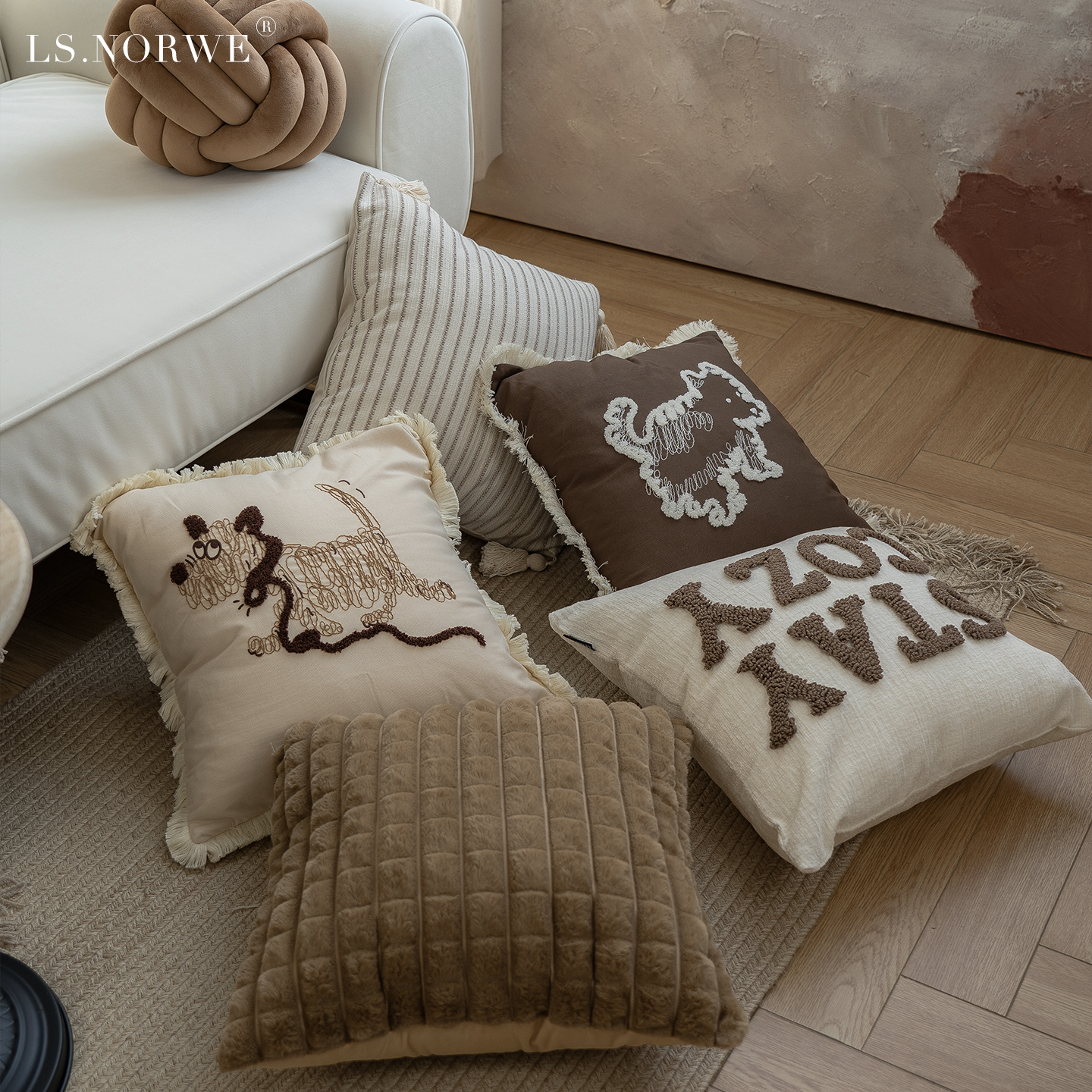 淘宝潦草小狗抱枕组合美拉德风枕套客厅沙发靠枕靠背刺绣飘窗床头靠垫